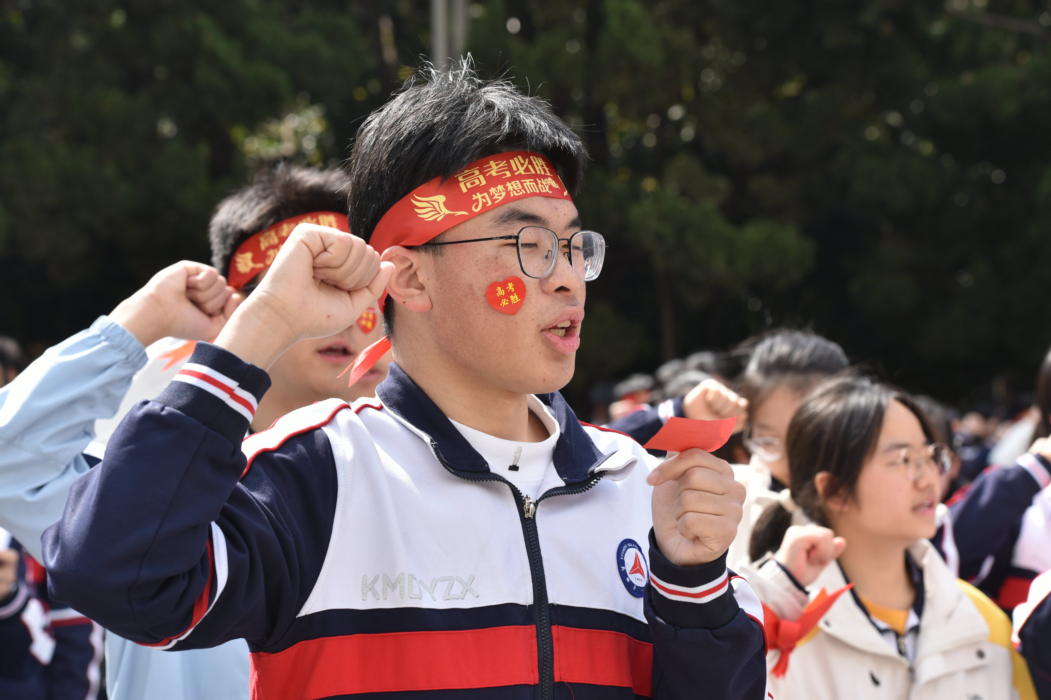 随后,高三班主任们登台,带领2026届高三学子庄严宣誓:“心怀凌云志,不负少年时。不负父母期盼,不负恩师教诲,不负青春理想,不负百日时光。珍惜一百天,让汗水孕育不凡;奋斗一百天,用信念铸就灿烂;拼搏一百天,凭实力实现梦想!”高昂的誓言余音未散,同学们齐声唱响昆华校歌:“练好我们的心,练好我们的身,此心此身,成己成人!”这正是昆华学子应始终恪守的昆华精神。