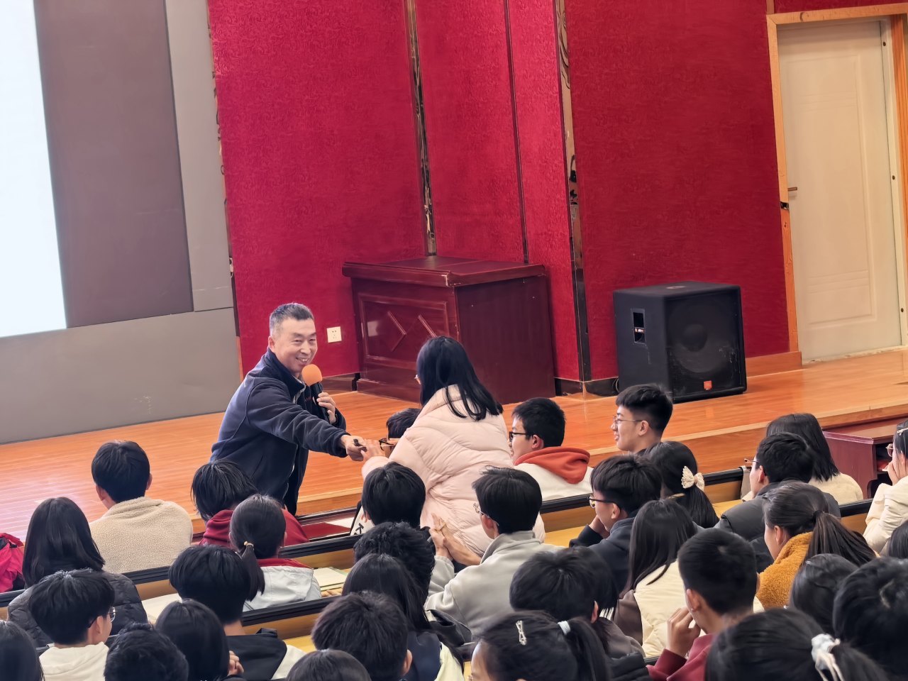 讲座的最后,陈华根教授结合自身数十年的科研与科考经历,对昆一中的莘莘学子寄予了殷切期望。他语重心长地勉励同学们,“平和是持久的力量”,真正的科学探索从来不是一蹴而就的激情,而是日复一日的坚守、心无旁骛的沉淀与平和从容的坚持。在追求科学真理的道路上,唯有保持平和的心态、坚定的信念,才能抵御浮躁、攻坚克难,行稳致远。同时,陈教授着重强调了爱国主义精神的重要意义,他指出,极地科考队员们远赴冰天雪地的南极大陆,远离祖国与亲人,在极端恶劣的自然环境中坚守岗位,支撑他们的正是深沉的家国情怀与坚定的爱国信念。他希望同学们将个人的理想追求与国家的发展命运紧密相连,胸怀祖国、放眼世界,勤学善思、笃行不怠,以科考队员为榜样,锤炼过硬本领,涵养爱国情怀,努力成长为担当民族复兴大任的时代新人,在未来的科技征程中续写属于中国青年的精彩篇章。