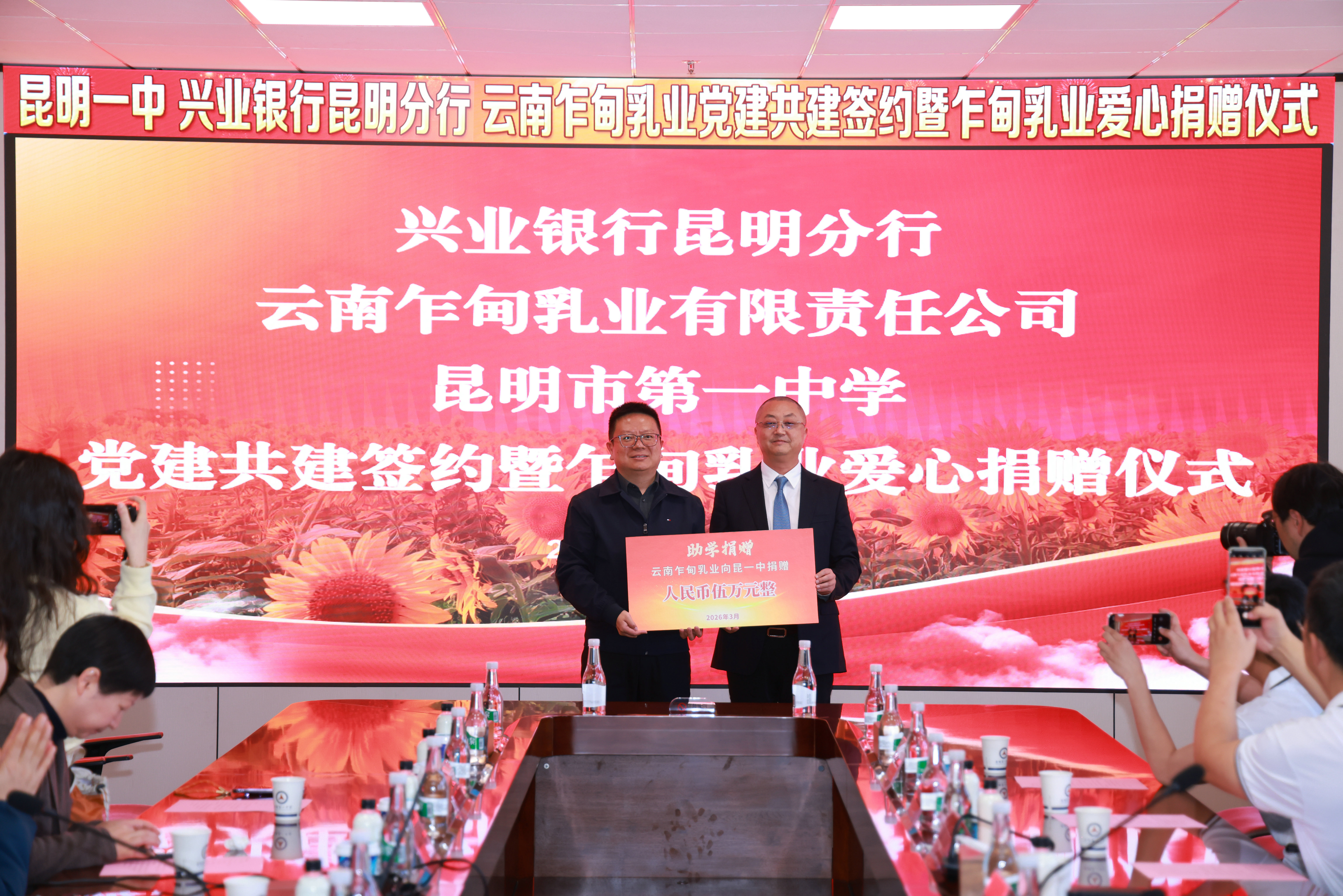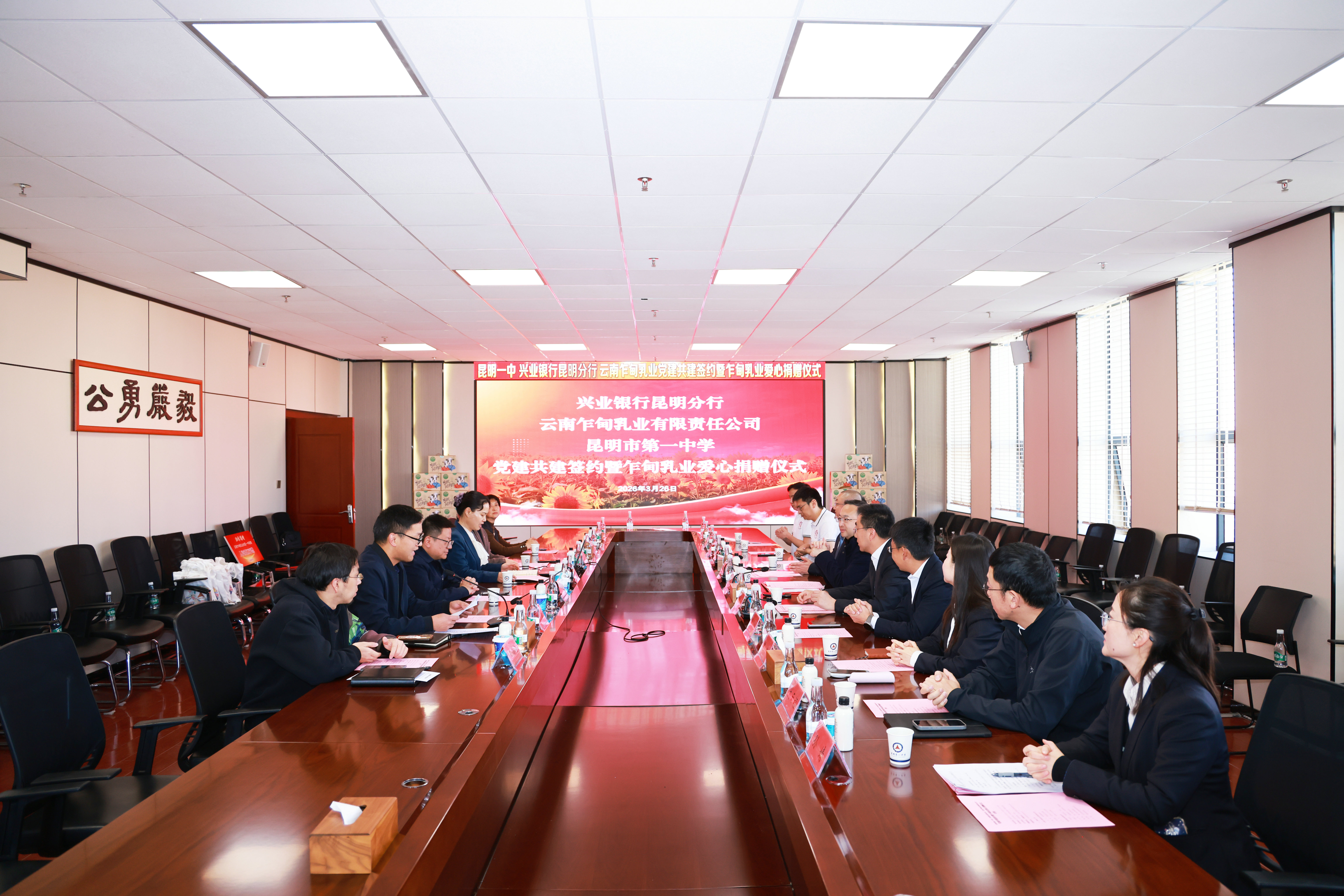 为不断拓宽党建联建路径,构建教育、金融、实业三方协同发展的育人新格局,3月26日,昆明市第一中学、兴业银行昆明分行、云南乍甸乳业有限责任公司党建共建签约暨爱心捐赠仪式在昆一中举行。校银企三方齐聚一堂,以党建为纽带,共话责任担当,共商合作发展,共育时代英才。
