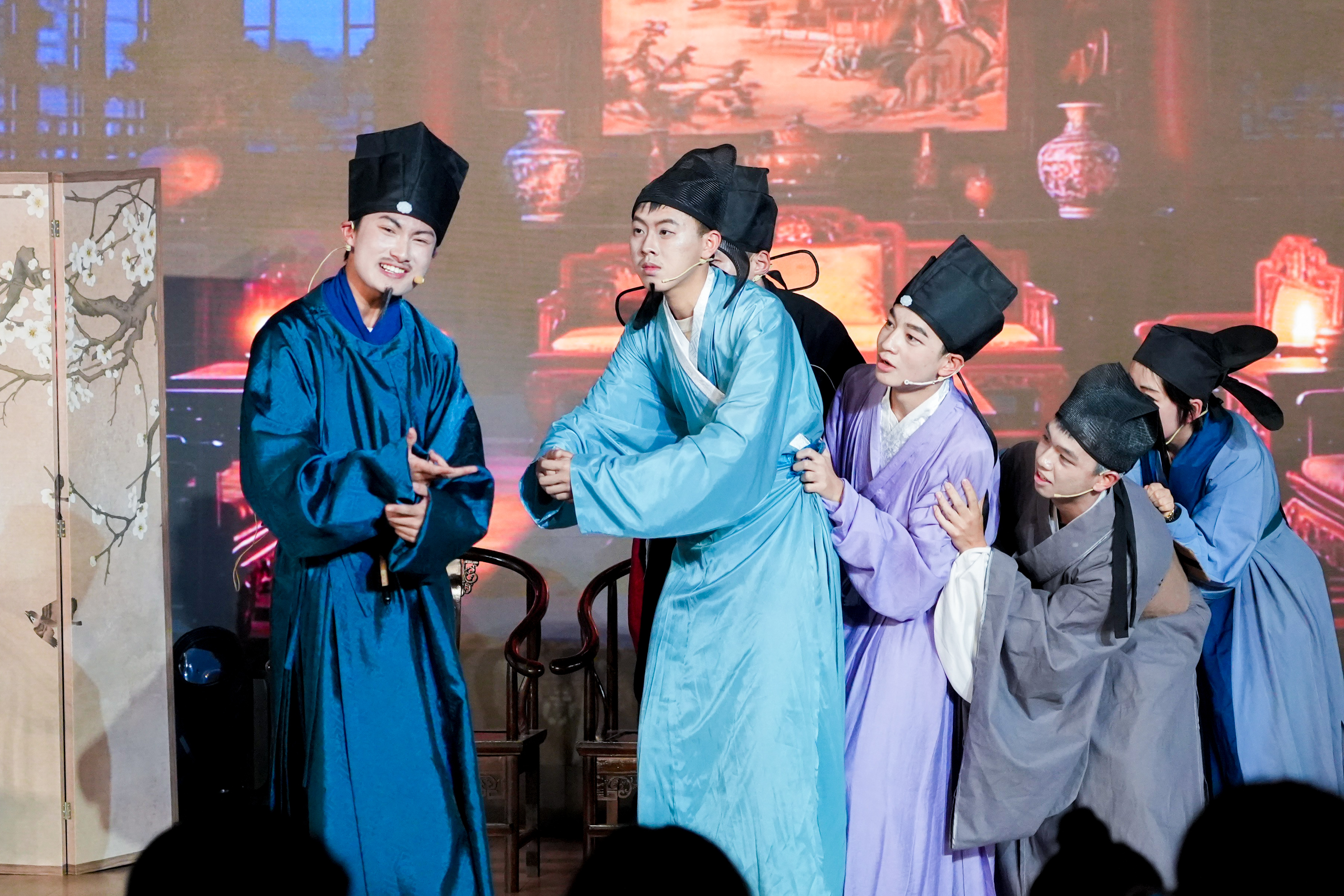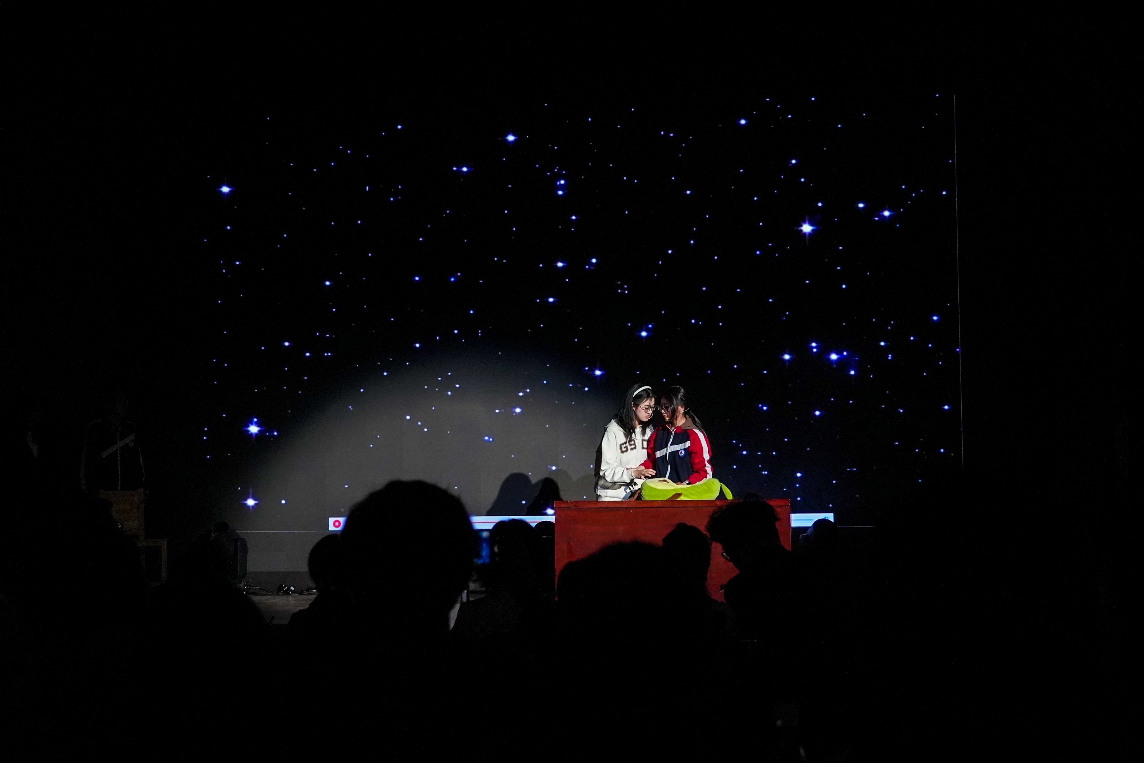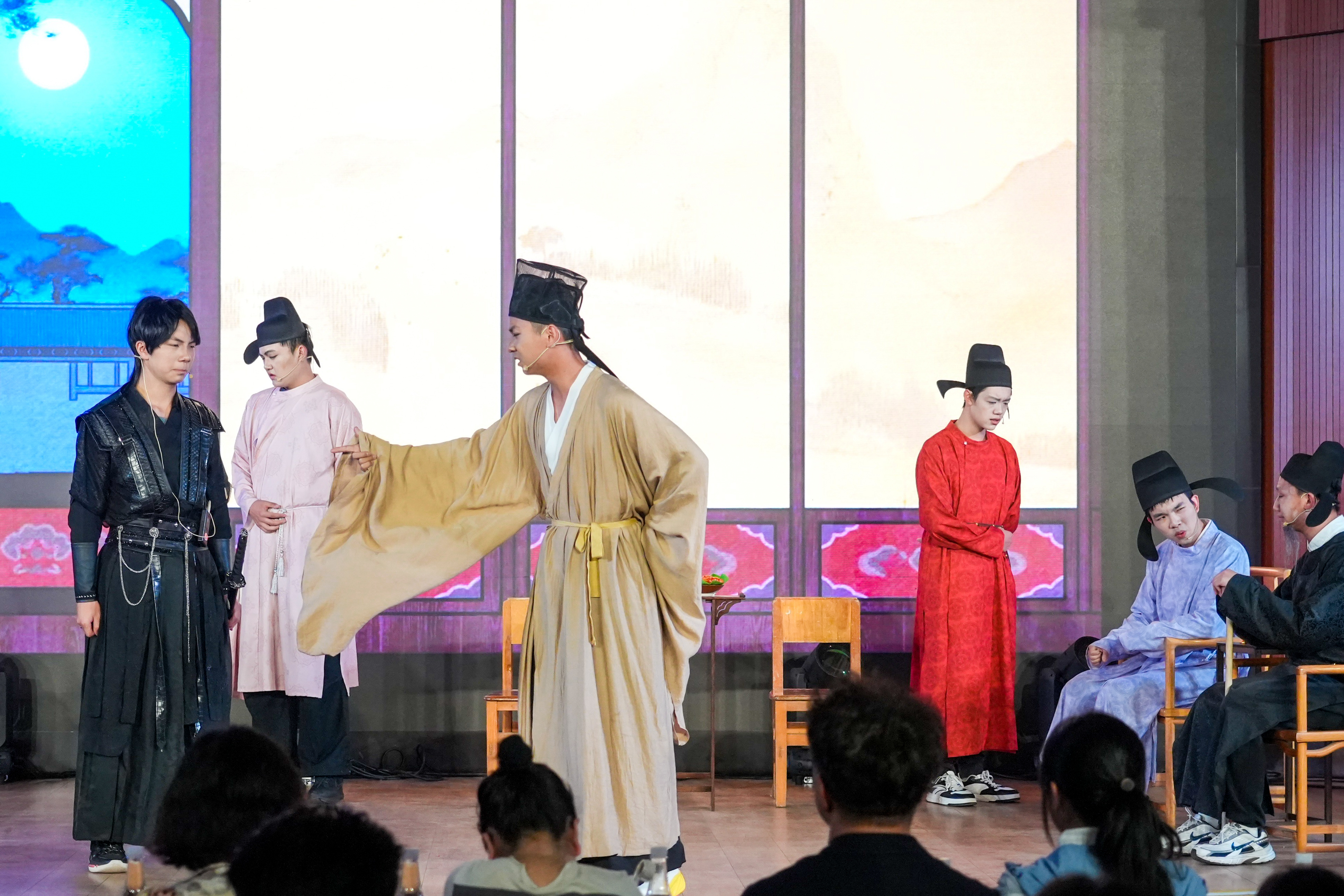 随后主持人邀请了在场同学发表活动感谢,有同学说,当导演太难了,排戏排到怀疑人生,演员临时改词、道具突然失踪、灯光死活跟不上,差点想冲上去替他们演;有同学说,自己为了改剧本干到凌晨两三点,第二天早读差点睡过去,但台上那个磨了十几遍的包袱响起来的时候,全班在后台无声击掌;有上半场的同学说,别的班不评价,但我们班就是厉害,下半场的兄弟姐妹一定要来看,不来后悔三年;有同学说,作为观众坐在台下,感觉每个班都很有意思,有的让人哭,有的让人笑,有的看完愣了半天——原来还能这么演;还有同学说,如果还有机会自己也要上台。