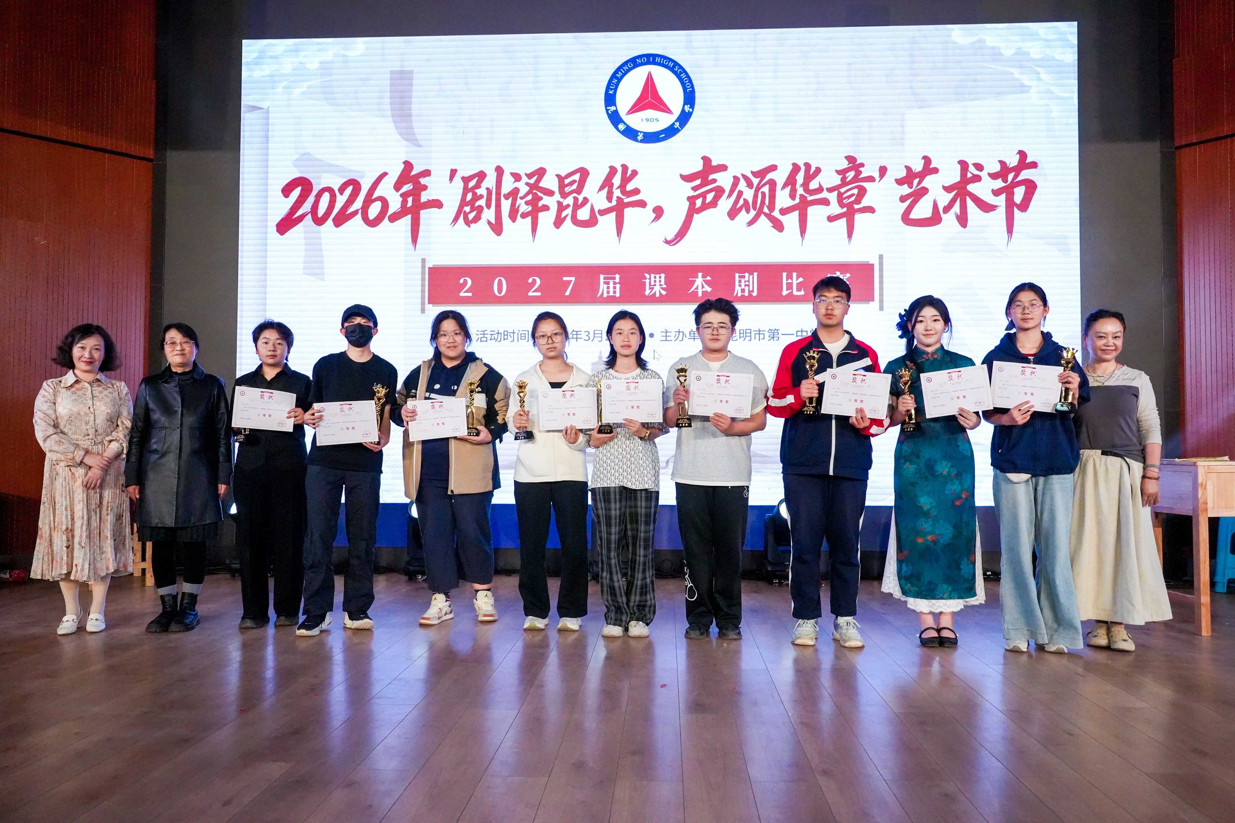 最后到了颁奖环节,灯光定格,掌声回荡。这一刻,我们致敬所有为舞台倾注心血的少年。感谢台前幕后的每一个你——是你们让文字长出翅膀,让历史重新呼吸;感谢每一位指导老师,是你们托举起这群少年的戏剧梦;感谢每一个班级,你们用十九种不同的方式,诠释了同一句话:青春,就是最大的舞台。此刻,荣耀属于每一位参与者。请收下这份掌声与光芒。