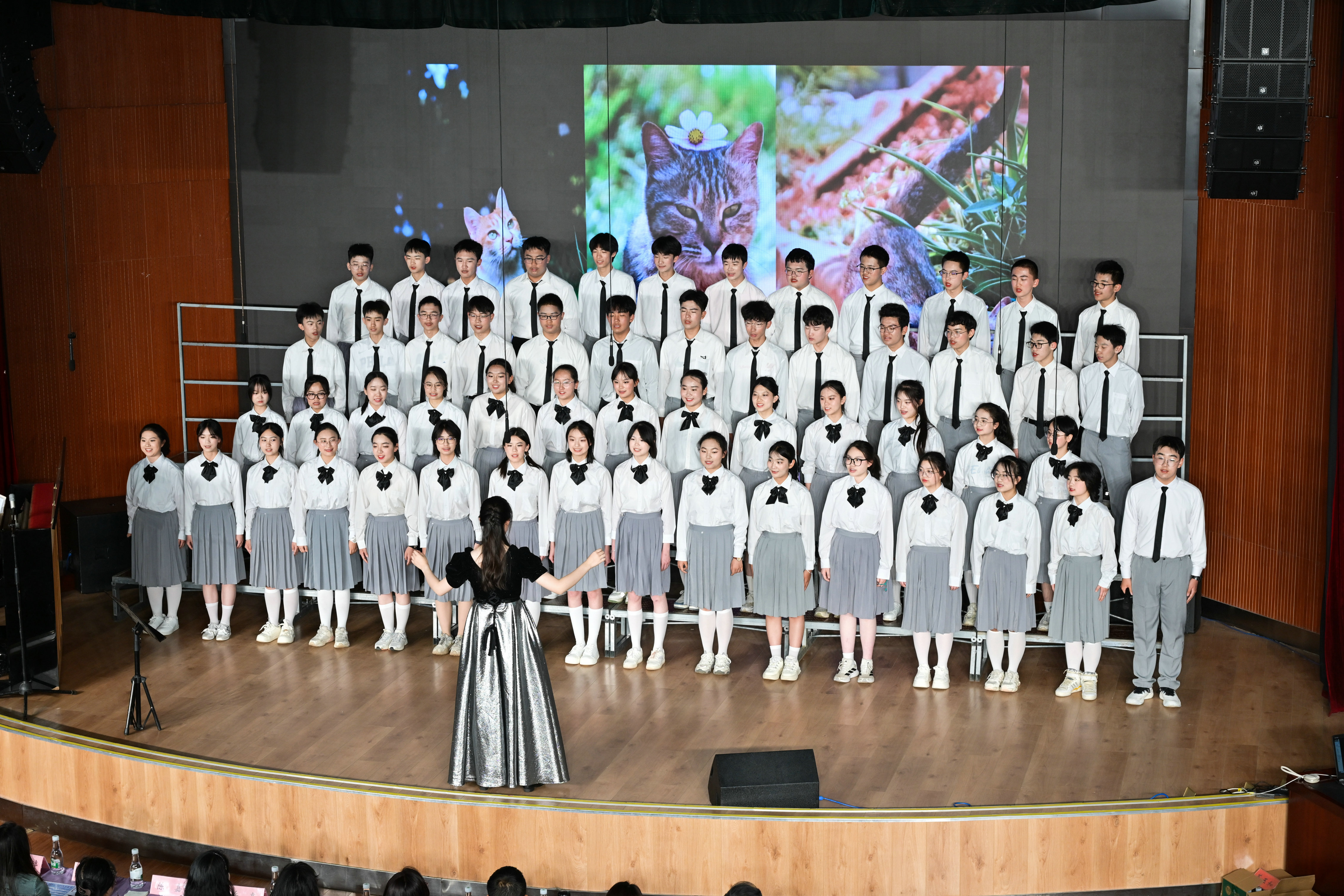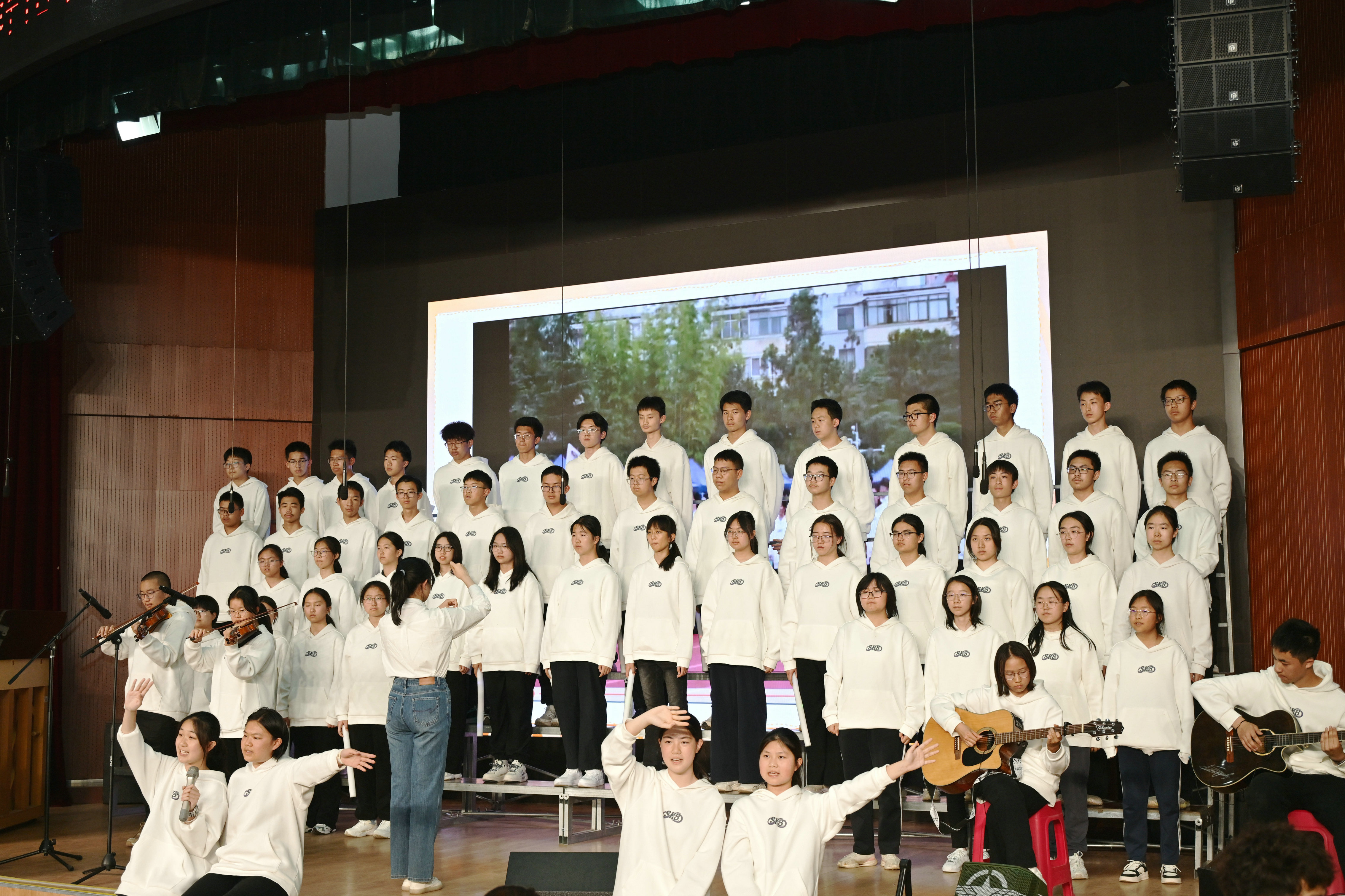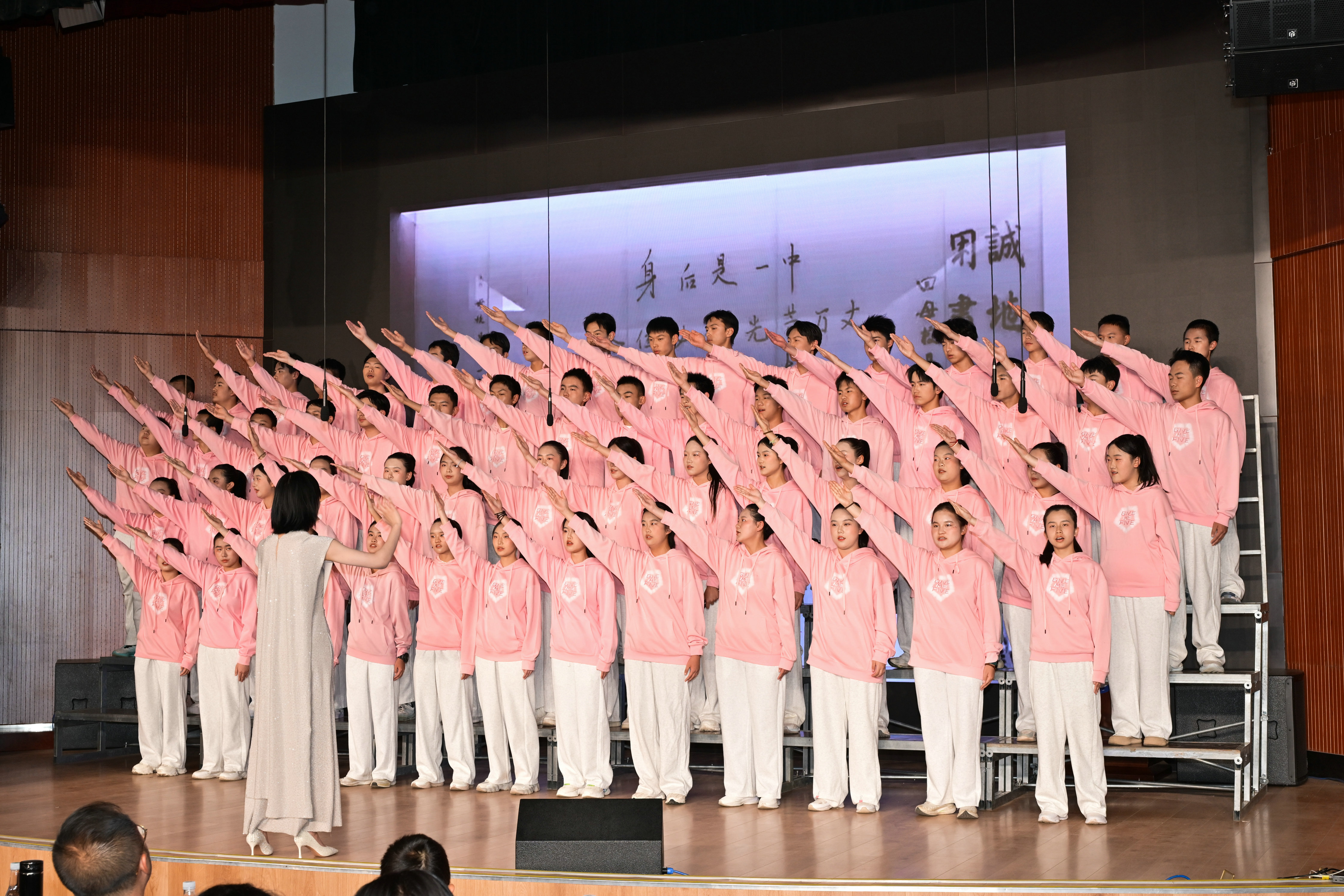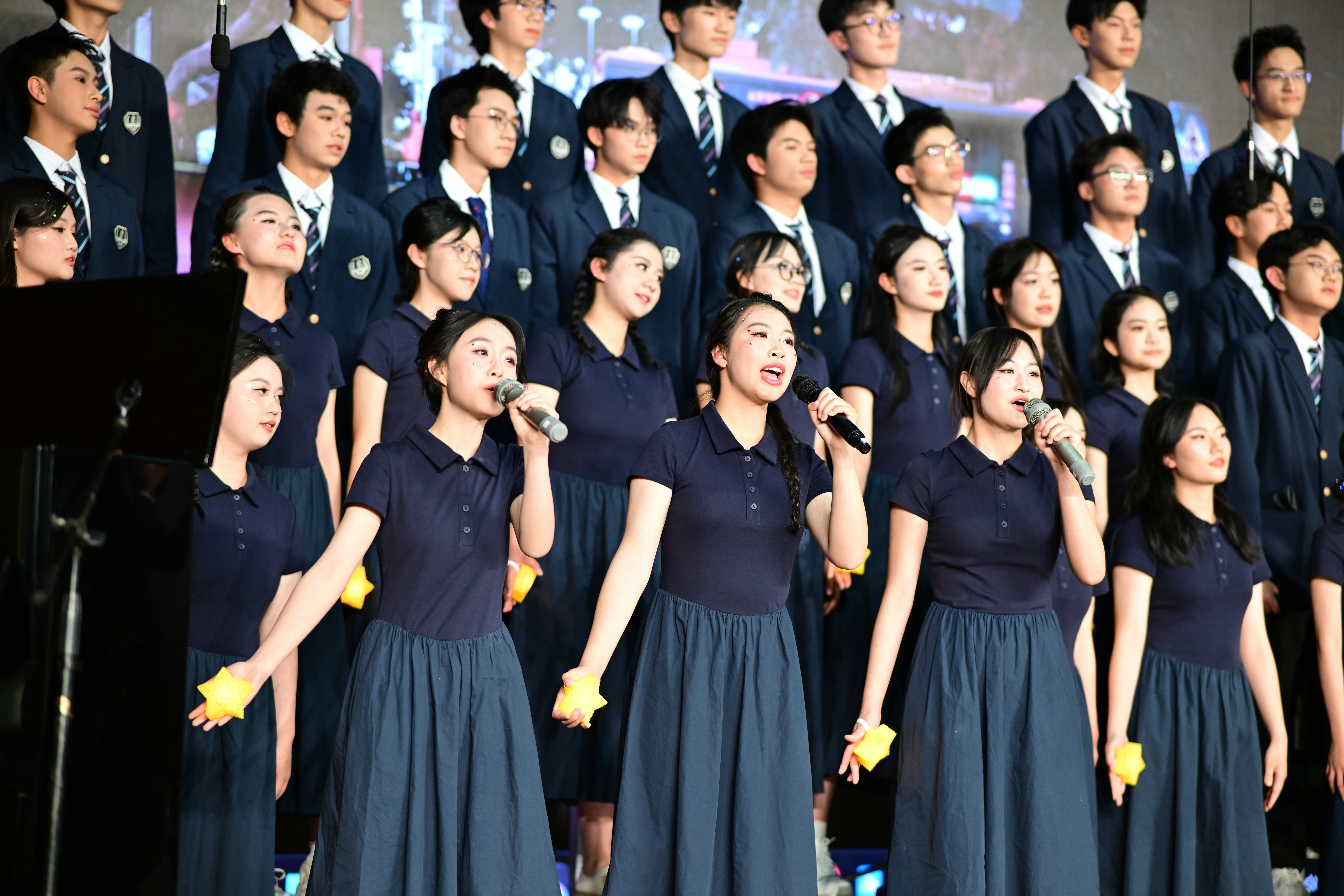 2班以《我是如此相信》为誓,以青春之名赴时代之约,怀揣热爱与勇气,坚定向前,始终追逐光、成为光;16班以《你从未离去》诠释同窗温情,前路相伴,情谊不散;8班以《紫荆花盛开》唱响紫荆盛放,情深意长,愿繁花永驻、山河无恙;14班《夜空中最亮的星》以歌声为灯,照亮前行之路;13班用《萱草花》传递温暖牵挂,刚柔并济间尽显少年的担当与柔情;11班以“有我”为志,以青春之名守护山河壮阔,奔赴未来征途;18班以《明天会更好》祈愿美好,借和平清泉的温润,传递对未来的无限期许,愿少年前程似锦,愿世间岁岁安康。