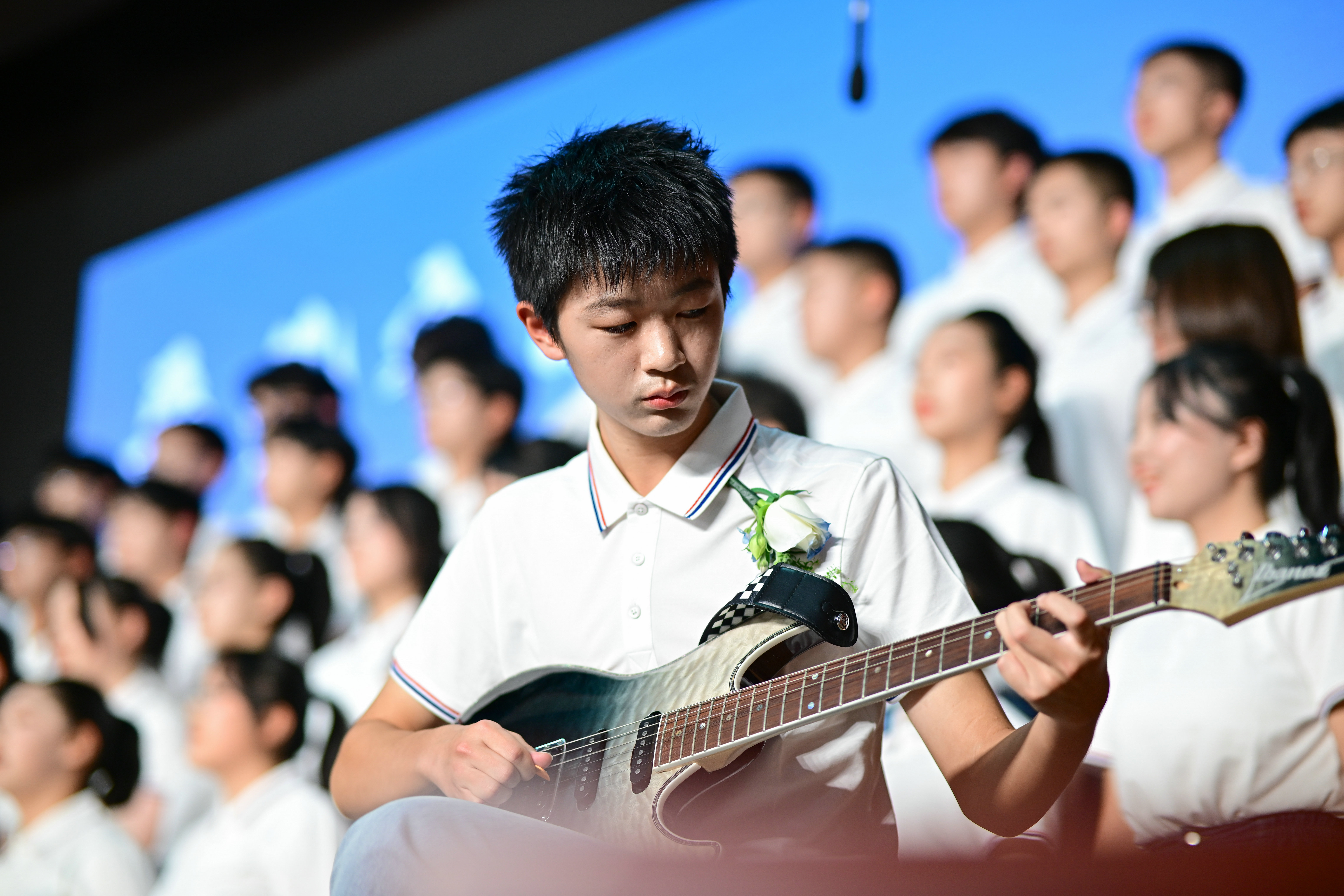 1班以《稻香》追忆初心,旋律里满是稻田晚风的温柔,唤醒简单纯粹的少年情怀;17班再唱《稻香》,在四溢的旋律中珍藏成长路上的温暖与纯粹;10班以《平凡之路》诠释成长,坚信平凡亦可赴不凡,希望昆华学子把平凡之路走得坦荡且精彩;9班献唱《送你一朵小红花》,以歌声赠予每一位逐梦少年,愿这份温柔与勇气,伴我们穿越困境,奔赴山海。