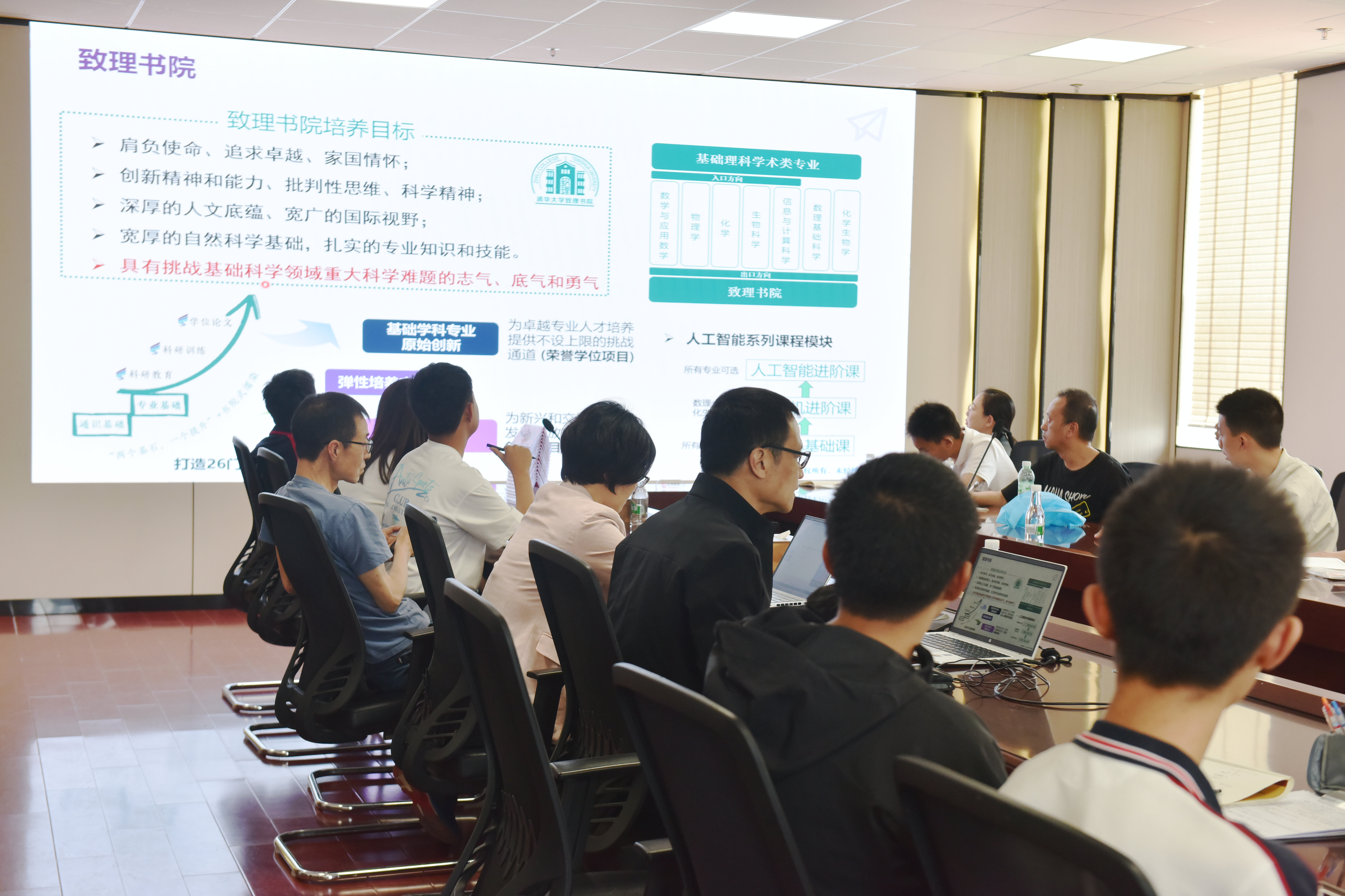 接着刘教授重点介绍了清华大学强基计划的五大书院与11 个招生专业,并以书院里的优秀学子为例,让同学们直观感受到不同方向的培养特色:致理书院聚焦数理等基础学科,培养有志气、底气、勇气挑战基础科学领域重大难题的的学子;日新书院深耕文史哲等人文学科,让同学们在“中西融汇、古今贯通、文理渗透”中成长为兼具人文底蕴与跨学科视野的新时代文科人才。未央书院主打“理工双学位”交叉培养,培养能打通理论与实践的复合型人才,未来可投身先进制造、关键技术攻关;探微书院以化学、生物为核心,让同学专注前沿研究,在实验室里探索解决重大健康与材料问题的新路径;行健书院立足力学,衔接航空航天、能源动力等工科方向,培养面向国家重大工程需求的未来工程师。