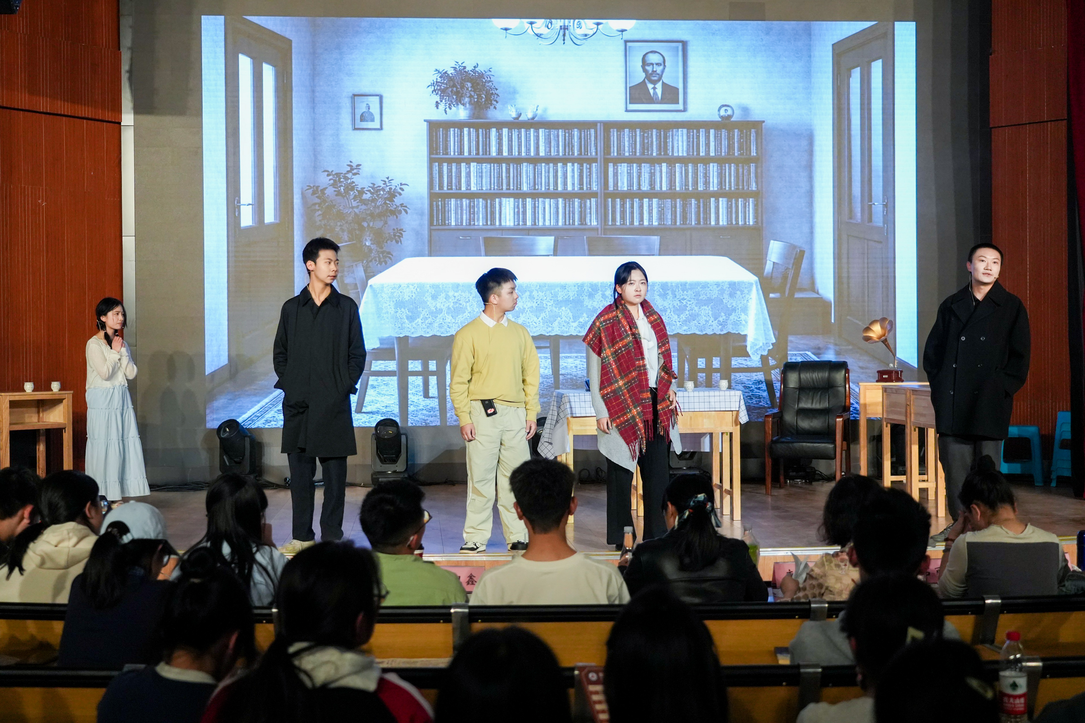 随后主持人邀请了在场同学发表活动感谢,有同学说,当导演太难了,排戏排到怀疑人生,演员临时改词、道具突然失踪、灯光死活跟不上,差点想冲上去替他们演;有同学说,自己为了改剧本干到凌晨两三点,第二天早读差点睡过去,但台上那个磨了十几遍的包袱响起来的时候,全班在后台无声击掌;有上半场的同学说,别的班不评价,但我们班就是厉害,下半场的兄弟姐妹一定要来看,不来后悔三年;有同学说,作为观众坐在台下,感觉每个班都很有意思,有的让人哭,有的让人笑,有的看完愣了半天——原来还能这么演;还有同学说,如果还有机会自己也要上台。