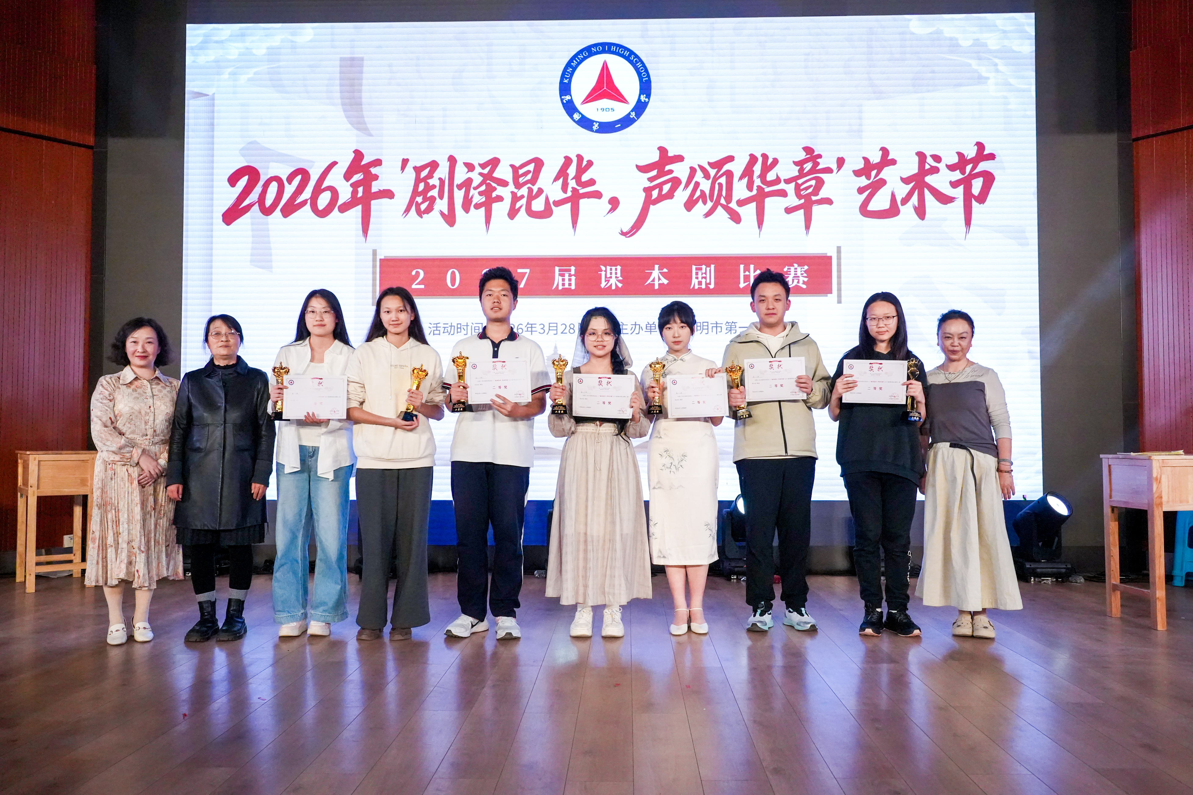 最后到了颁奖环节,灯光定格,掌声回荡。这一刻,我们致敬所有为舞台倾注心血的少年。感谢台前幕后的每一个你——是你们让文字长出翅膀,让历史重新呼吸;感谢每一位指导老师,是你们托举起这群少年的戏剧梦;感谢每一个班级,你们用十九种不同的方式,诠释了同一句话:青春,就是最大的舞台。此刻,荣耀属于每一位参与者。请收下这份掌声与光芒。