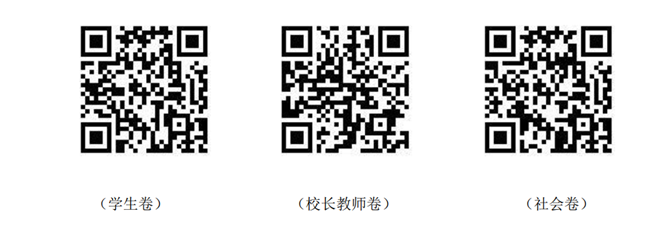 通过手机扫描相应二维码或复制链接到浏览器打开进行填答,提交问卷后由系统自动上传保存。调查对象为学生(小学一至三年级学生除外)、校长教师、社会人士。
