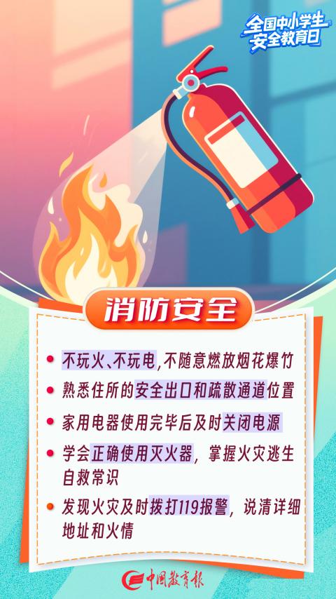 春季干燥易起火,消防安全记心间!不携带易燃易爆物品入校,不私拉乱接电线,离开教室、宿舍及时断电;牢记火灾逃生技巧,熟悉校园消防通道和安全出口位置,遇到火灾时保持冷静,用湿毛巾捂住口鼻,弯腰低姿有序撤离,及时报警。