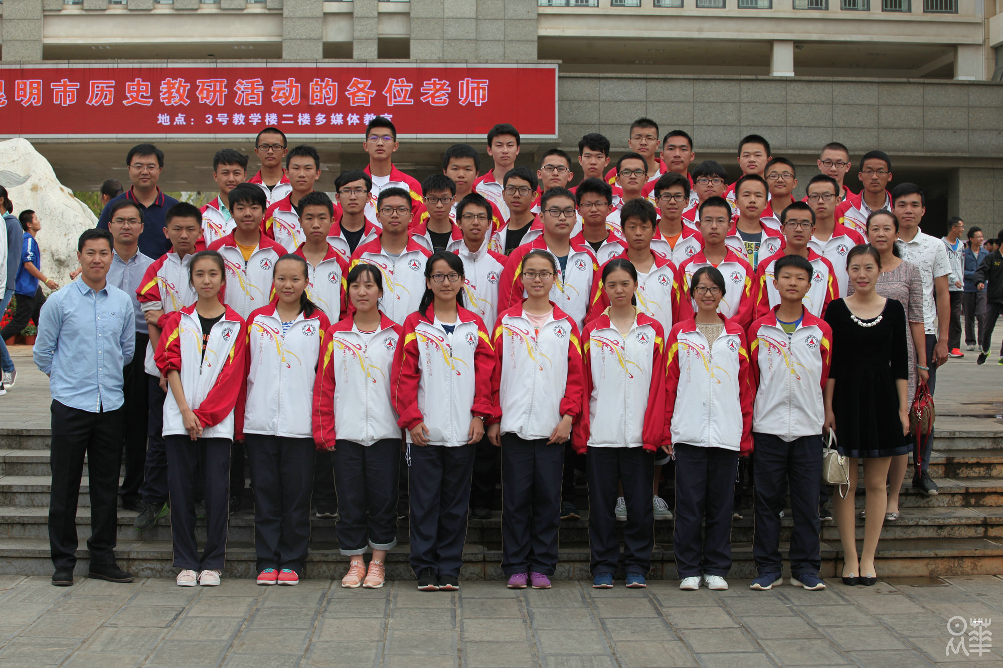 高二年级获奖者与指导老师合影