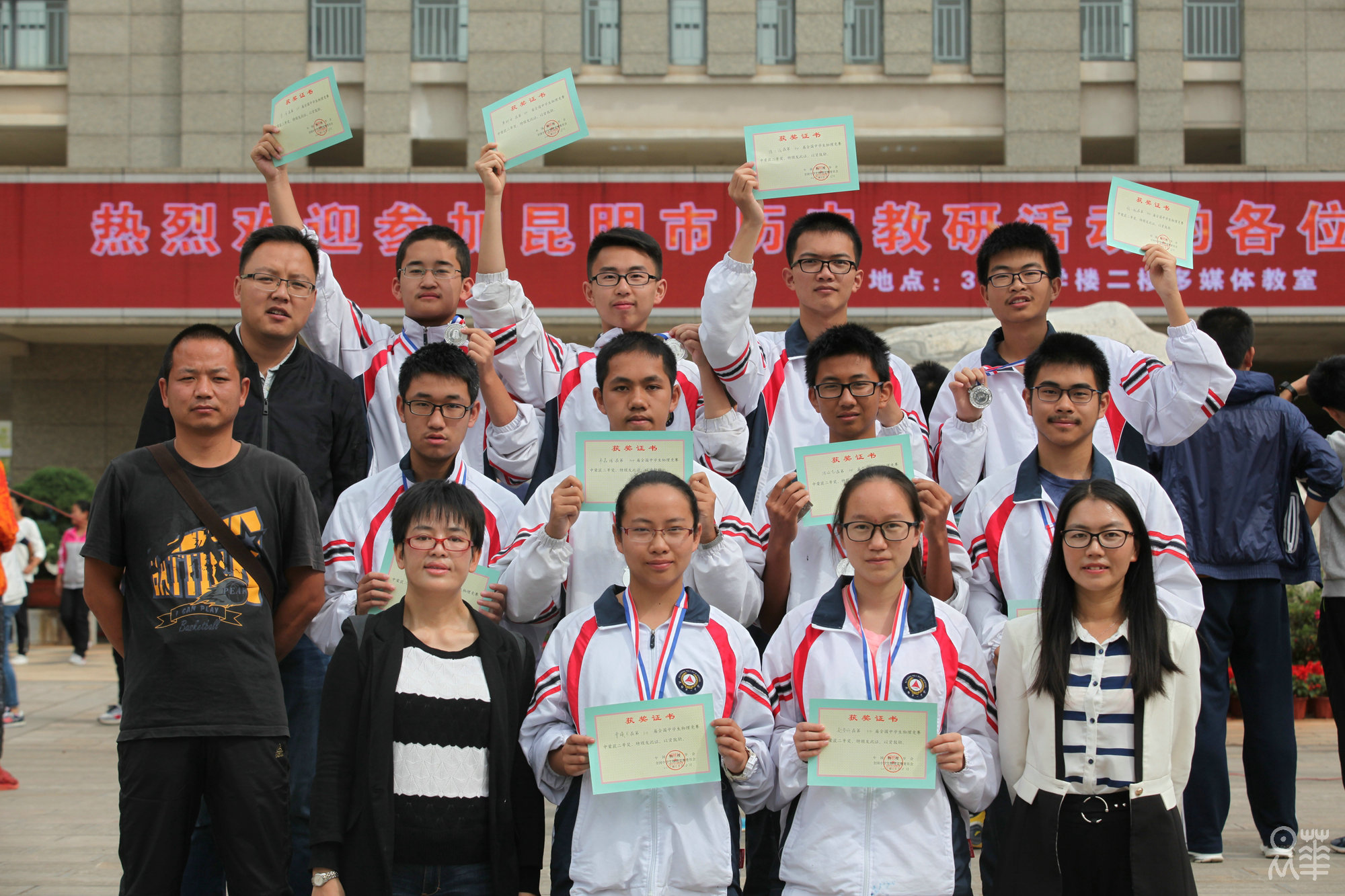 高三年级获奖者与指导老师合影