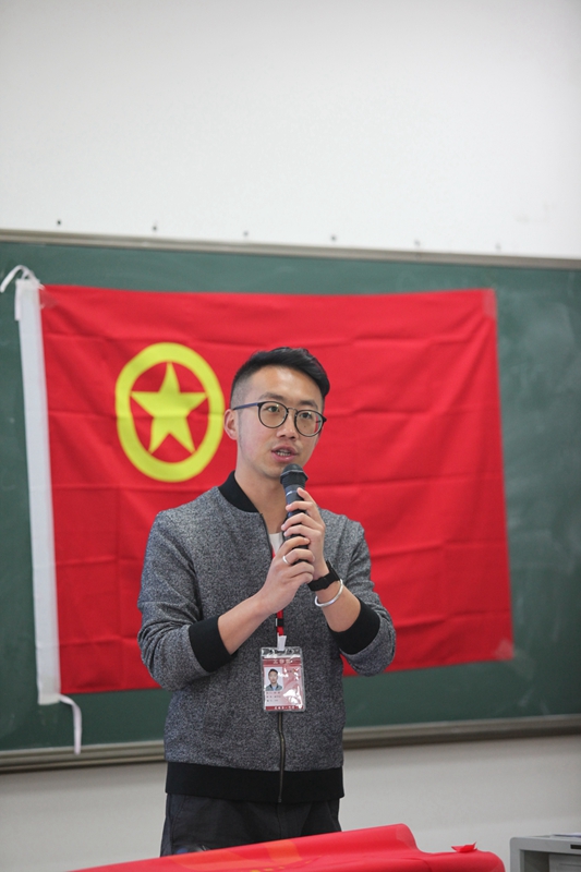 党课的最后,同学们聚在一起合影留念。大家来到百年大道上,富有创意地站成了一个党徽图案,以自己的实际行动祝愿党的十九大胜利召开。