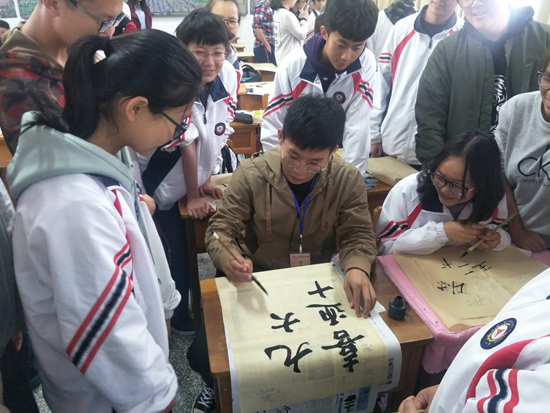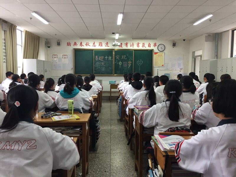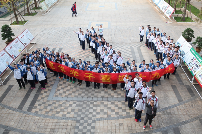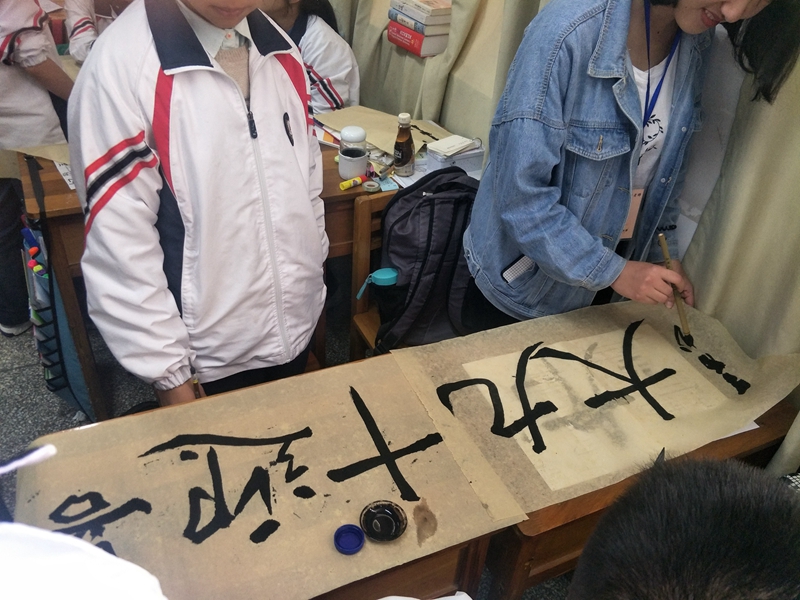 我校高二年级在喜迎十九大的喜庆氛围中,在美术课上用中国最传统的书法形式一起来书写我们的共同心愿:庆祝十九大的热烈召开,并祝愿十九大顺利举办,爱国从我做起,少年强则国强。