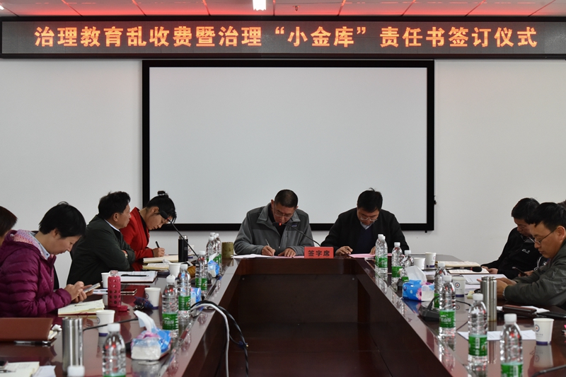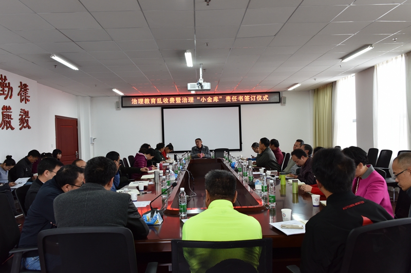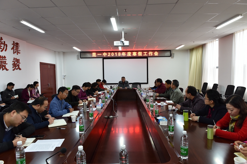 2018年2月27日上午,我校在行政楼会议室召开了2018年度寒假工作会。赵校长就新学期认真学习贯彻十九大精神、增强学校德育工作的时效性、加强教师队伍建设、提高教育教学质量、学校特色化建设6个方面的工作进行了安排部署,希望各部门、各年级组、各学科带领全校教师,像习近平总书记在新年贺词中所说“不驰于空想、不骛于虚声,一步一个脚印,踏踏实实干好工作”。随后,赵校长着重就加强师德师风建设、治理教育乱收费问题进行了专题教育,希望全校教师严格执行教育部 “六不准”规定,并就教辅资料的征订、使用等问题提了严格要求。最后赵校长代表学校领导班子与各年级组长等相关领导干部签订了《昆明市第一中学治理教育乱收费暨治理“小金库”责任书》。