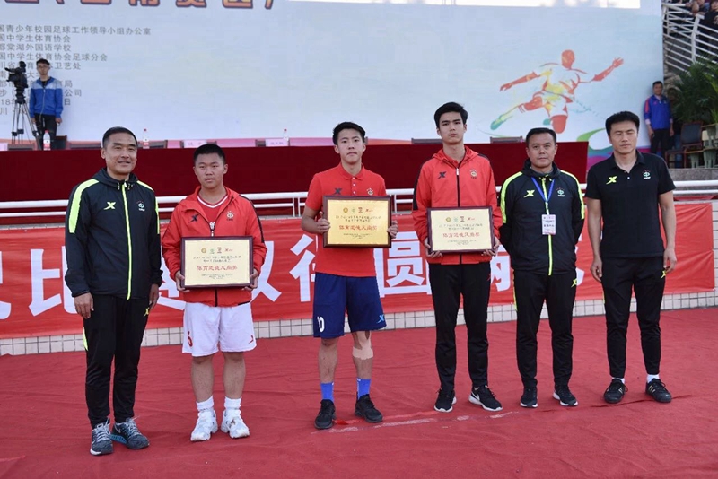 4月16日,经过了10天、48场比赛的紧张赛程,2017—2018全国青少年校园足球联赛高中男子组西南赛区的比赛在成都棠湖外国语学校落下帷幕。我校足球队连克江西省、广西省冠军队等诸多强队最终荣获第六名,并被授予体育道德风尚奖称号。短短的一年时间,球队从去年的西南赛区第十二名跃升至第六名,在队员比较短缺,高三年级几名主力队员没有随队出征的艰难情况下,超额完成赛前闯入十强的原定目标,实现了历史突破。