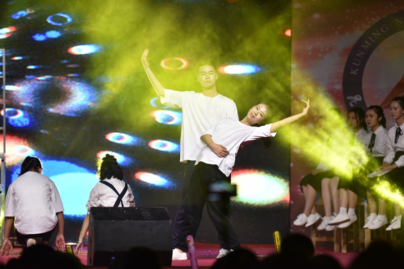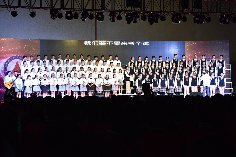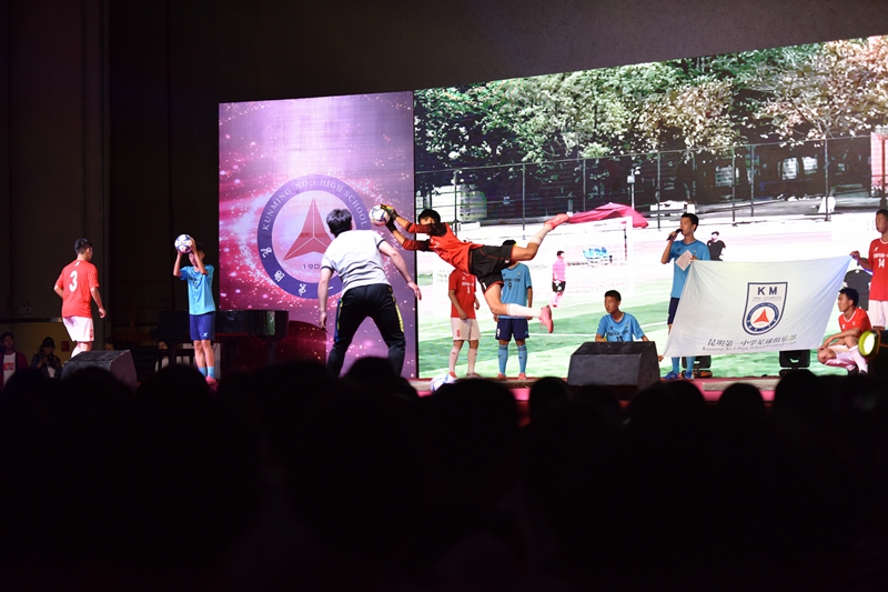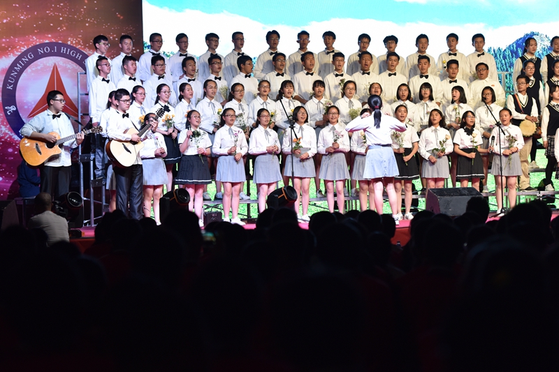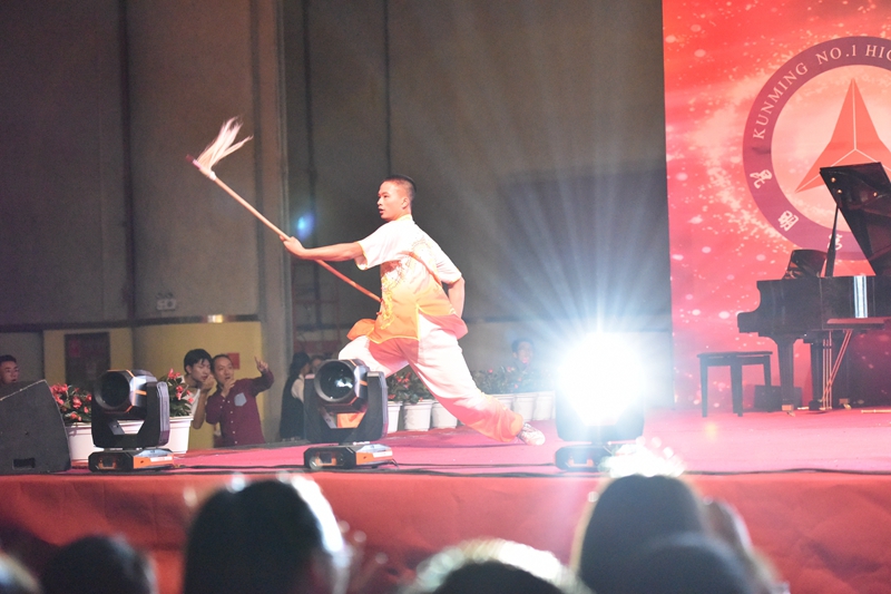 这是一场多么丰富的视听盛宴!由昆一中诸老师同学们组成的青年才俊们各展风采,赢得阵阵雷动的掌声与场下同学惊叹的目光,哦,最特别地,一中校友、中国国家交响乐团小号副首席尹小珲学长,重踏上昆华园热土,以让一中人为之自豪的才华带来了小号独奏《someone to watch over me》。众节目编排用心,感情真挚,主持人妙语连珠,表演者全力挥洒着汗水,观众随音乐鼓着节拍,又随舞台剧的演出笑得前仰后合……我想,大概这就是昆华园的模样吧,每一帧画面,都是生机,都是春天的气息,从柔婉的舞姿,到刚健灵活的武艺,都迸溅出力量。