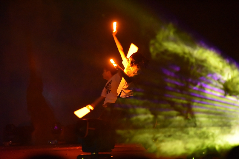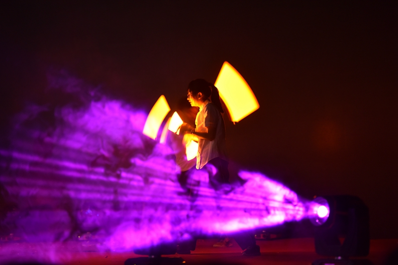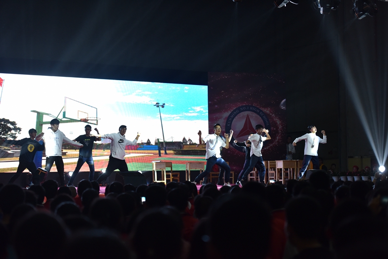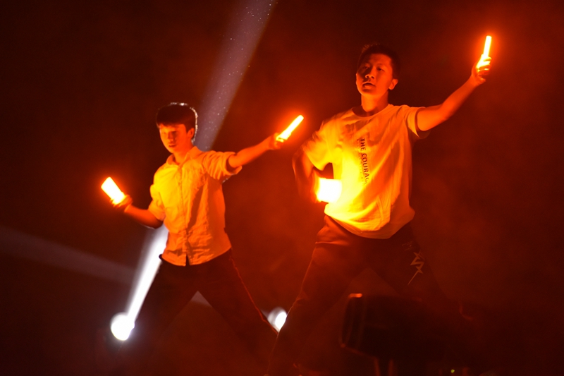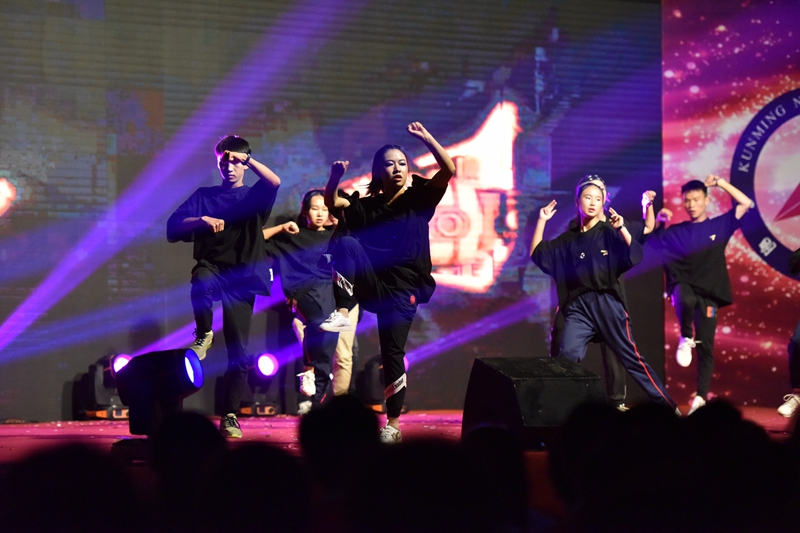 当好戏开场,灯火既灭,全场随之平息了喧哗,而霎时间光焰四射,瞩目异常,绚烂华彩的灯柱相交织,又变化为星火般的跳动之态。此新鲜之景,引得在场同学仰首四顾,无不为之震撼。在这一股力量下,在这一中搬迁至现址80周年的日子里,昆一中2018文艺汇演拉开了帷幕。