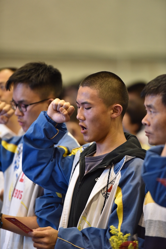 赵校长的讲话充满了对18届学子的谆谆教诲,一是感恩,二是担当,三是公民的责任,同学们深切感受到了老师与学校的期望,一股暖意涓涓而来;家长代表发言,字字都融入了对孩子的牵挂和期望,句句是殷切的关切,台下的师生家长们无不动容;同学代表发言,向我们展现了18岁少年的热血与拼搏,同学们心中仿佛有一簇簇向阳的花在奋力怒放。