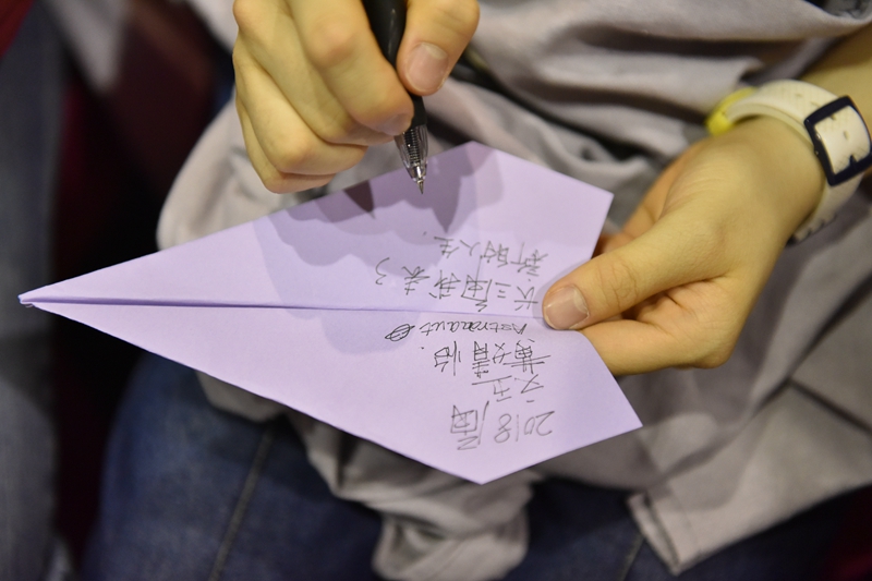 “昨天的我们最勤奋,今天的我们最自信!”经历了一番寒彻骨的奋斗,相信每一位昆华学子都会迎来自己的馥郁芬芳。最后,在学妹悠扬的歌声中,一位位准大学生们在彩纸上写下了自己最美好的期许,折成飞机,载着梦想,飞向未来。(文字:王睿曦)