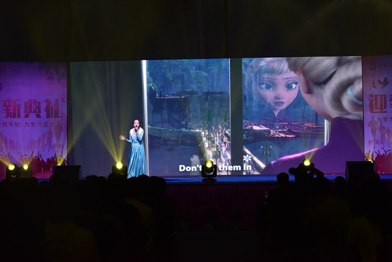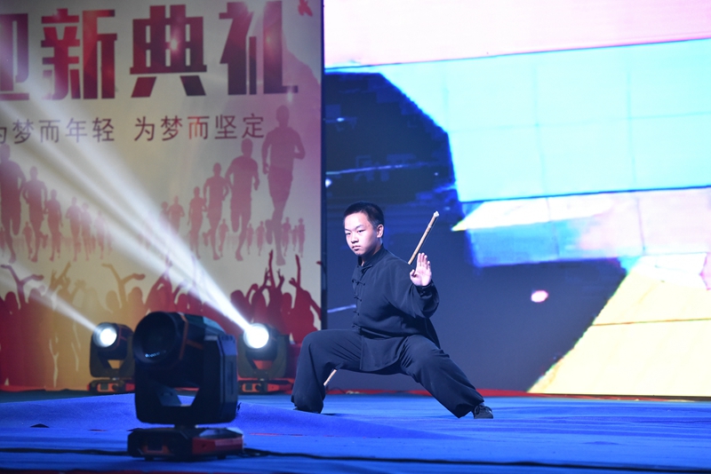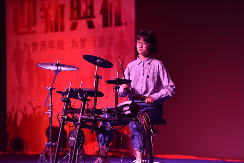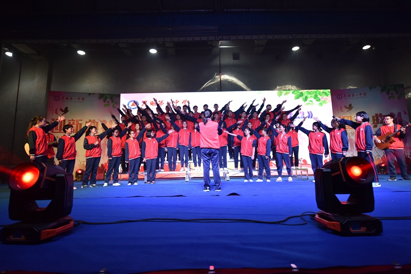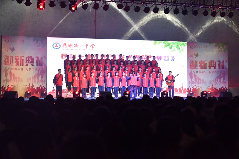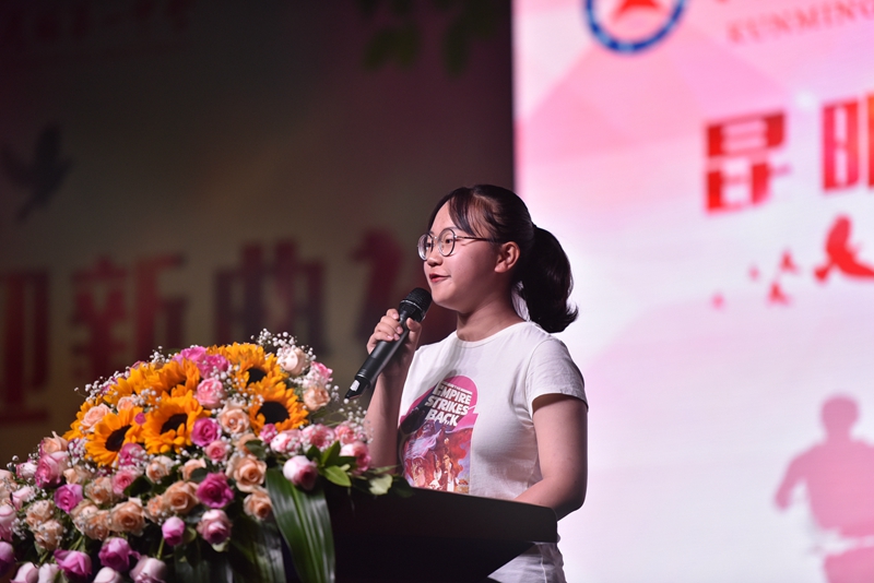 迎新典礼上,新生们积极参与,各显所能,营造出欢乐、轻松的氛围。校武术队展示的武术操,刚劲有力,举手投足间都展现着昆华学子的刚毅品质;一曲琵琶、一段独舞,醉人心魄,给人以古典美的享受;一首弹唱,轻快活力,是我们花样年华最好的伴奏……各类精彩节目,同学与老师们齐聚一堂,不知不觉中,我们已融入了昆一中这个大家庭。美好的时光总是显得短暂,在《昆华校歌》声中,迎新典礼落下帷幕。但袅袅余音仍萦绕于心,作为新生中的一员,那一刻我明了,自此我便是昆华中学生!