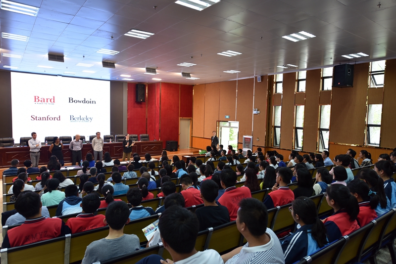 9月2日上午,来自巴德学院、鲍德温学院、斯坦福大学和加州大学伯克利分校的招生官与昆明市第一中学、昆一中西山分校、昆一中金岸中学、师大实验及昆十中的校领导进行了会谈,针对国内高中生如何顺利申请美国名校做了细致的阐述,并向广大的云南优秀学子发出邀请。