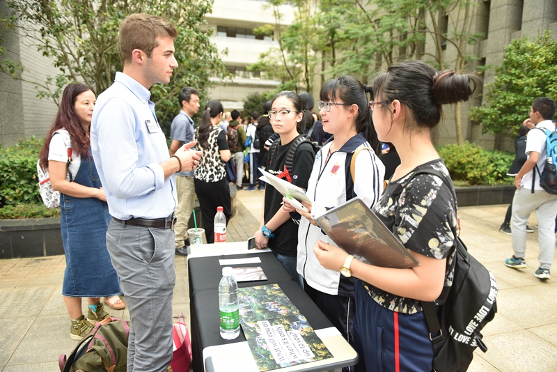 会议结束后,招生官们在我校举行了昆明地区唯一一场招生说明会,为同学们带来第一手申请资料、与大家面对面交流解惑。这场向全昆明市有志出国留学的同学们开放的招生会自确定消息后,便引发了许多学生与家长的关注,总计超过300人报名参加。