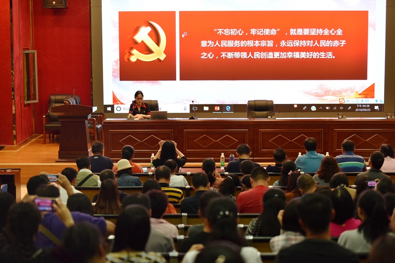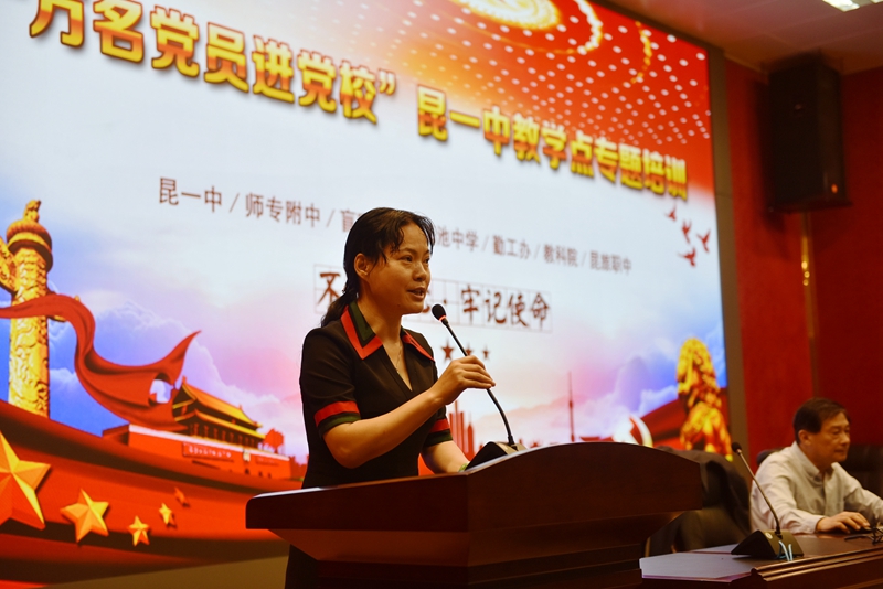 为深入贯彻落实省、市关于“万名党员进党校”培训工作相关要求,把培训工作推向深入,2018年9月25日下午,“万名党员进党校”昆一中教学点举行了专题培训。昆一中、师专附中、盲哑学校、滇池中学、勤工办、教科院、昆旅职中等学校的党员参加了此次培训。培训会由我校党委高富英书记主持。首先,由高书记领誓,全体党员面对党旗重温了入党誓言。接着,高书记简明扼要地为全体党员作《不忘初心 牢记使命 做四有好老师》的报告,跟随高书记的讲授,我们再次回顾了我们党的初心和使命。作为一名教师,我们要如何做到不忘初心,不辱使命?那就是要争做有理想信念、有道德情操、有扎实学识、有仁爱之心的好老师。