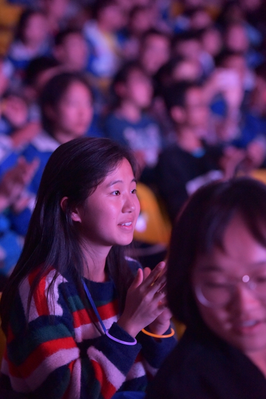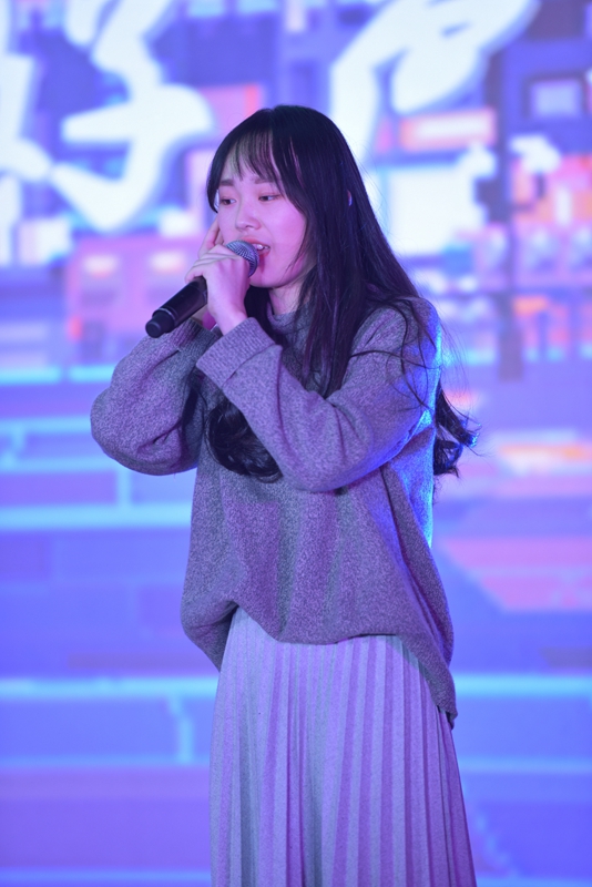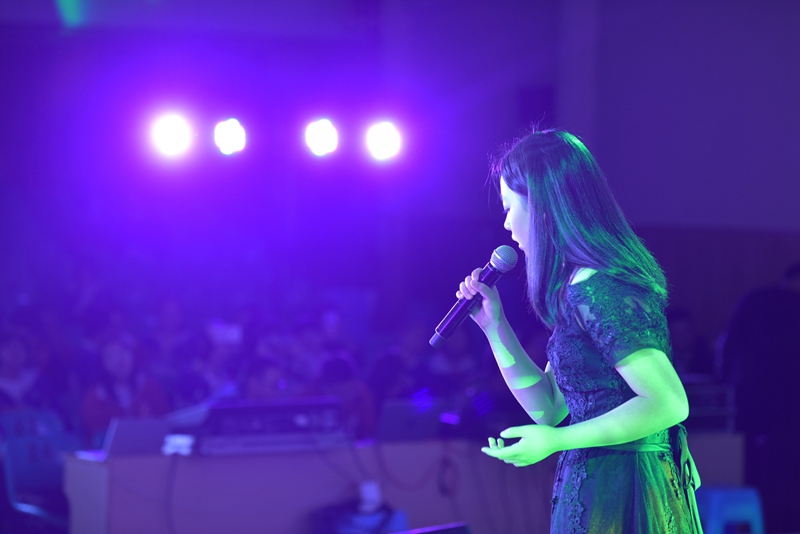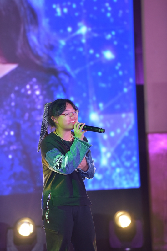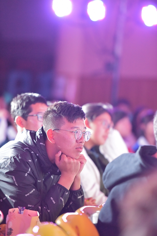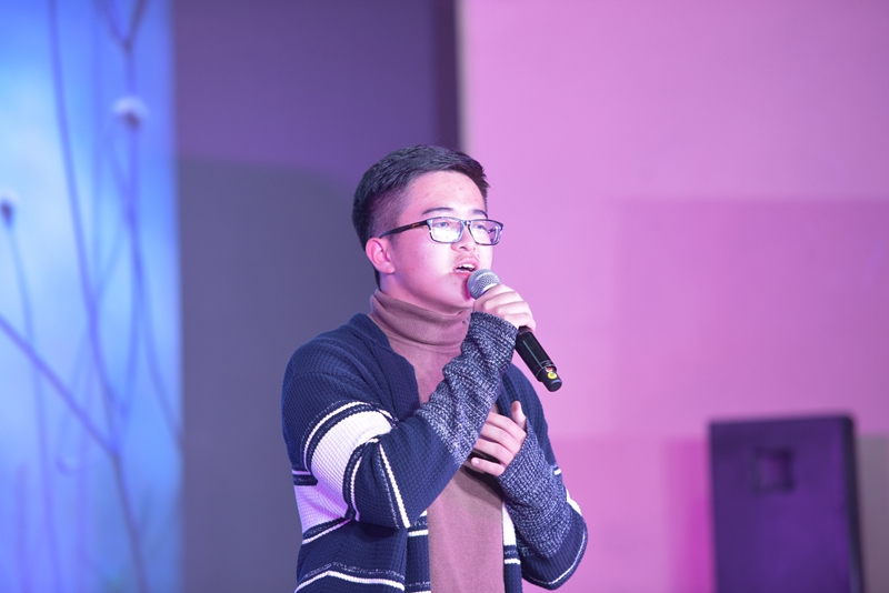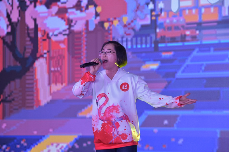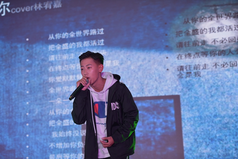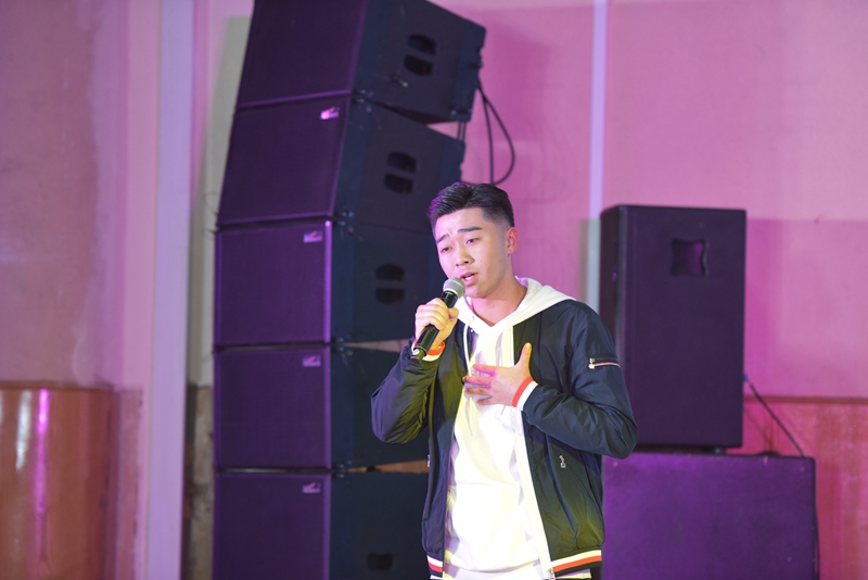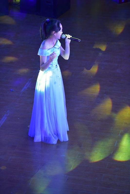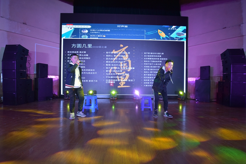 参赛同学如同八仙过海——各显神通,有的独唱,有的与同学搭档合唱,有的歌深情,有的歌活泼……赢得了观众的掌声与评委的赞叹。不过最令人欣赏的是李飞扬同学,如同她的名字一样,她唱了一首《青春飞扬》,她在台上又唱又跳,欢乐的节奏不由得感染了现场的观众。老师们也参加进来。高三年级的方老师歌声未落,同学们涌上舞台,争抢着给她送花,拥抱。还有高一年级的阿老师,他那动听的歌声让同学们陶醉不已。