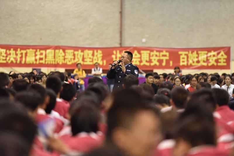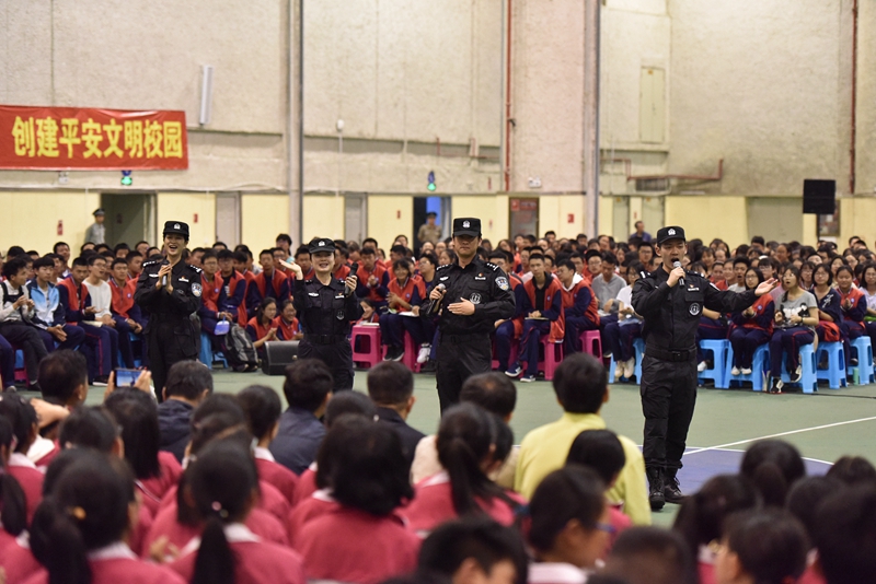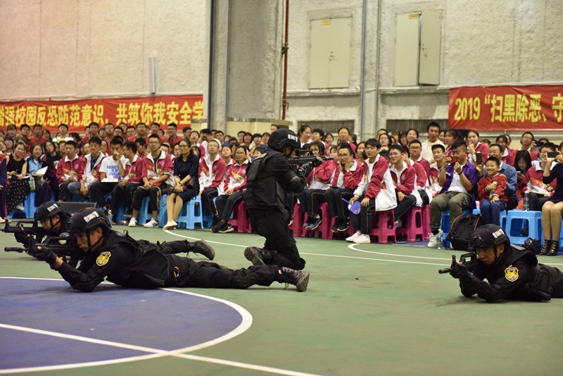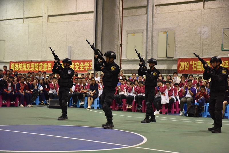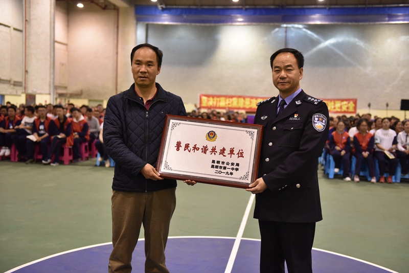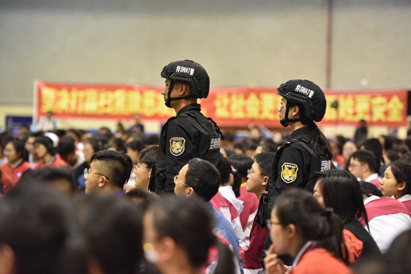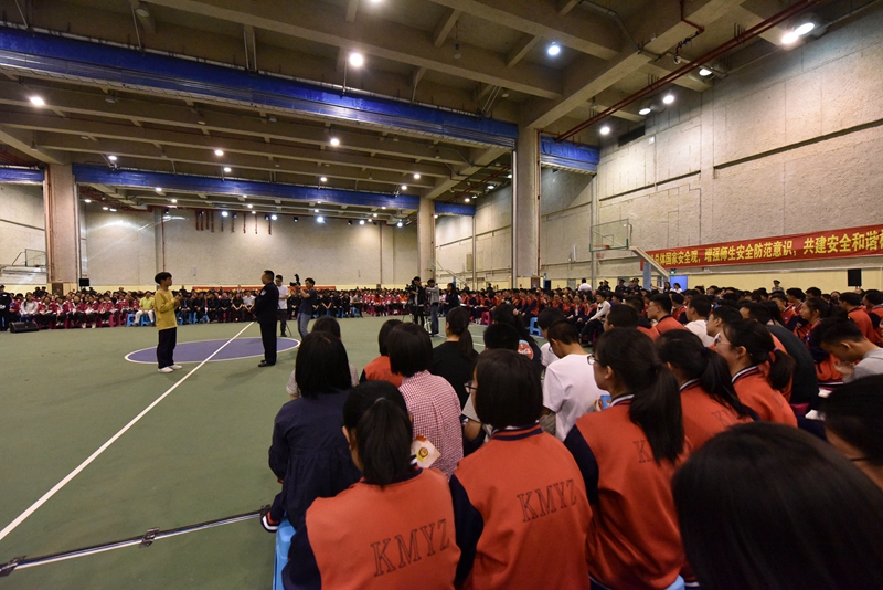 4月15日,第4个全民国家安全教育日, 2019昆明市公安局“扫黑除恶,守护平安”——“平安校园行”第二期主题宣传活动在我校地下体育场举行。市文明办副主任王雁鹏,市公安局党委委员、副局长徐琪勇,昆明市公安局政治部,经文保分局,特警、反恐、监管、国保支队,五华分局的领导、民警代表,我校领导及师生2000余人参加了活动。