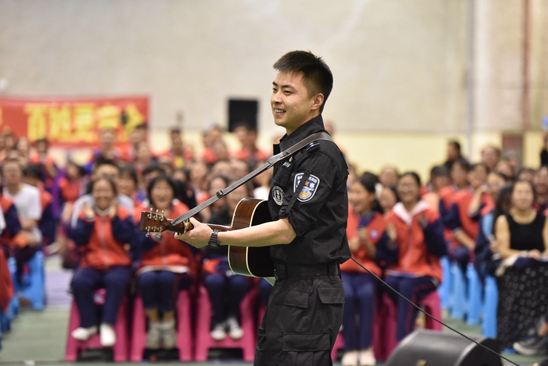 活动中,我校学生社团——国防与军事小组的20名同学为与会嘉宾和现场观众献上集健身、表演、格斗于一体的《腾飞的绿影》军体拳表演,全面展示了“试看今日少年英姿,且观明朝腾飞成龙”之“百年昆华、昆明一中”风采。市公安局文艺宣传小分队队员激情洋溢演唱的歌曲《夜空中最亮的星》,让我们意识到,警察同志就是我们夜空中的明星,众星点缀着夜空,为我们的安全保驾护航。活动的尾声,一曲《我爱你,中国》伴随着浓浓的爱国情怀回荡在整个地下球场,久久不能忘怀。