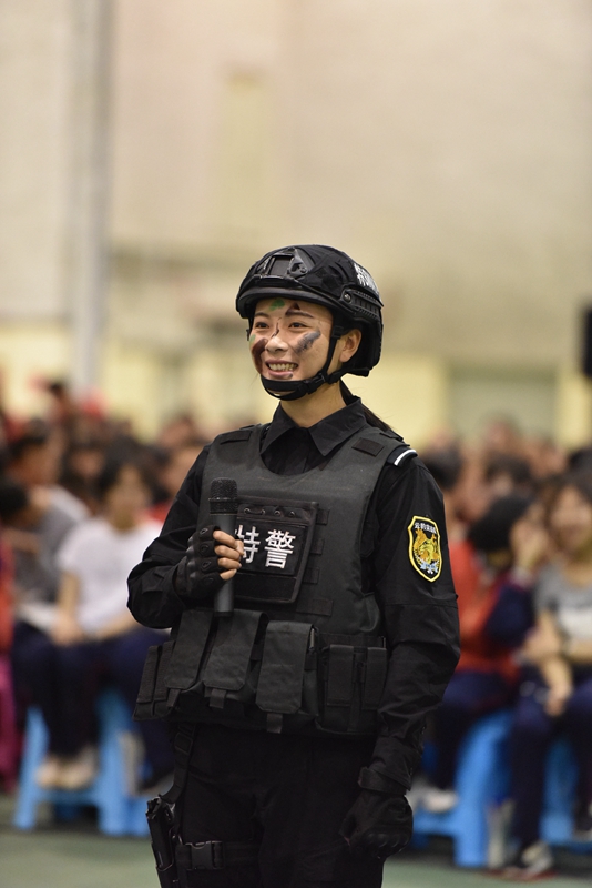全国公安机关优秀人民警察胡黎、昆明好人黄靖雯等4名特警支队民警作为先进个人代表现场讲述警察故事,与同学们进行互动交流。他们身上的热血爱国,无私奉献的精神使我们的心灵受到极大的震撼。