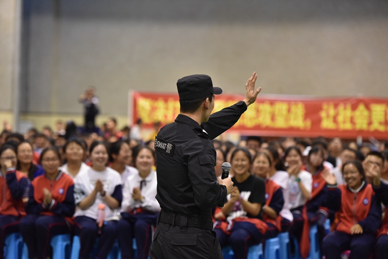 活动现场,市公安局经文保分局作为全市公安机关校园安全工作牵头警种,向参加活动师生开展了扫黑除恶进校园、防范欺凌暴力的宣传讲解,发动广大师生坚决抵制欺凌暴力行为,做文明守法公民;反恐支队民警向师生开展了反恐防暴知识培训,引导广大师生自觉抵御恐怖主义思想侵害,正确辨别暴力恐怖行为,强化自护自救意识和能力;国保支队民警向师生专题开展了“国家安全日”宣传教育,引导师生建立总体国家安全观,增强师生安全防范意识,共同维护校园和谐和国家安全。