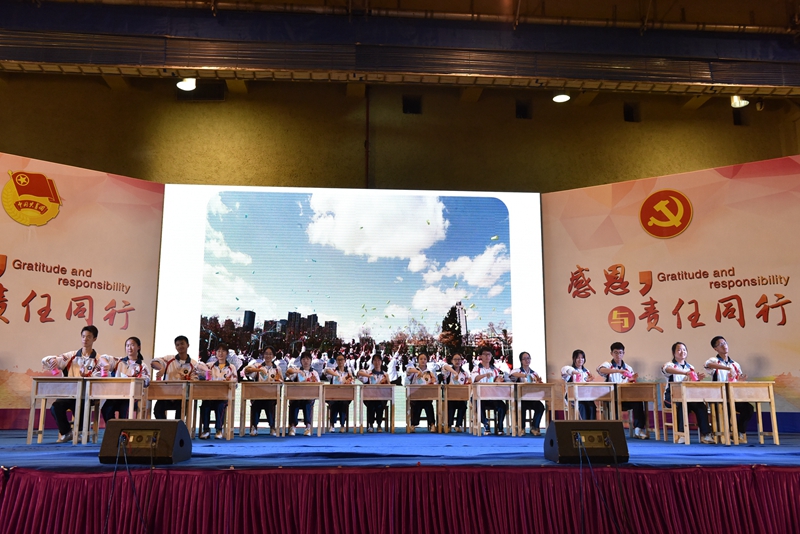 翻开宪法,我们宣誓,我们是中华人民共和国公民,我们立志为中华民族的富强而奋斗终生。同学们的声音凝聚起来,展现出一种坚不可摧,势不可当的力量。那一刻,我们正式地走向了成年,成为了新时代的青年人。那一刻,我们明白了,作为青年,我们任重而道远。