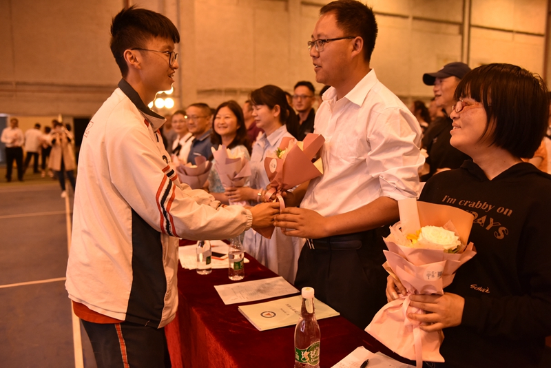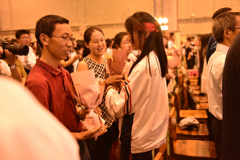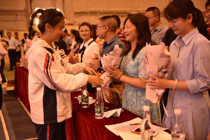 “前途似海,来日方长。”老师们洪亮的声音回荡在耳边,诉说着心底最真挚的感情,诉说着对我们最美好的祝福。当李文老师在舞台上红了眼眶,每个人的心田都湿润了。回望曾经,在每个独自努力的漫漫长夜,在每段挥洒汗水的奋斗时光,是他们一直默默地守望着。随时光流转,曾经懵懂青涩的面庞如今已然变得坚毅,是他们引导着我们成长,走向梦想的彼岸。一声