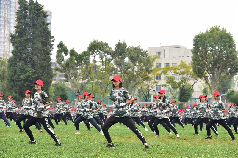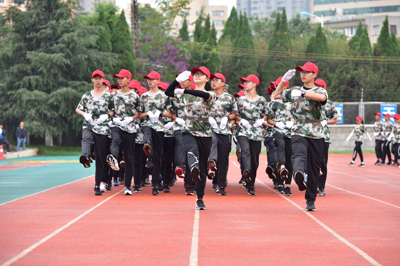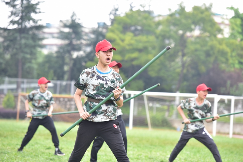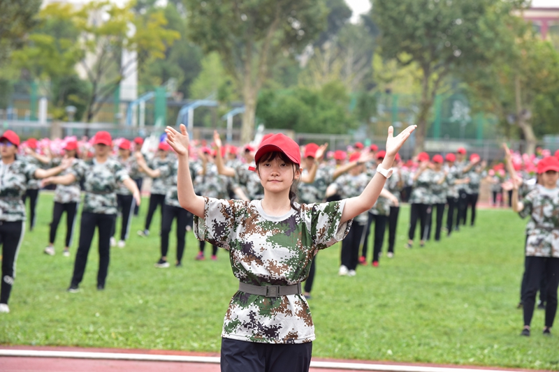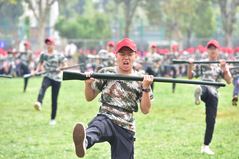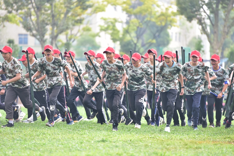 中流击水,浪遏飞舟,少年气魄比苍穹。耍枪舞棍,出拳利落,个个英姿勃发,是军人风范,是一中人的风采。