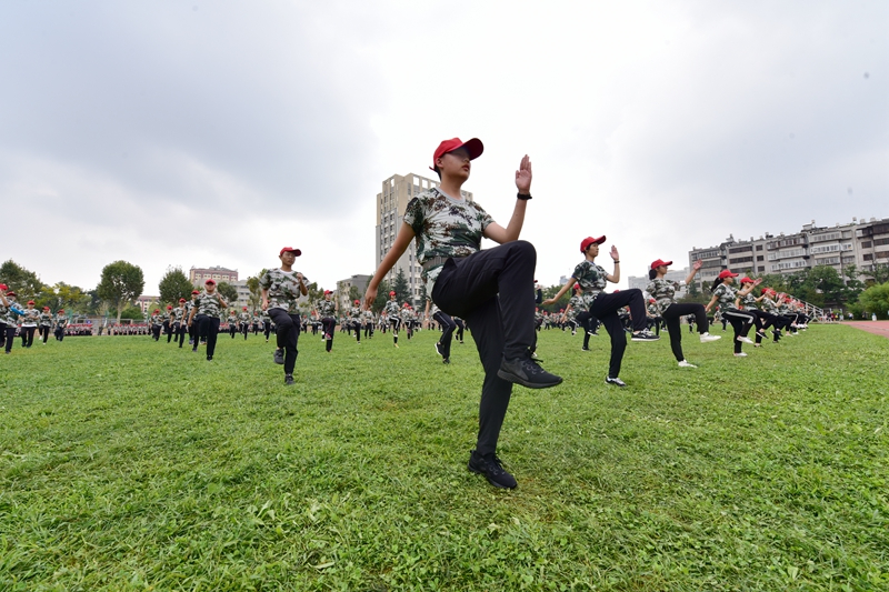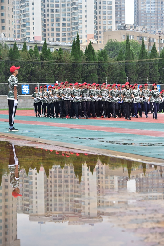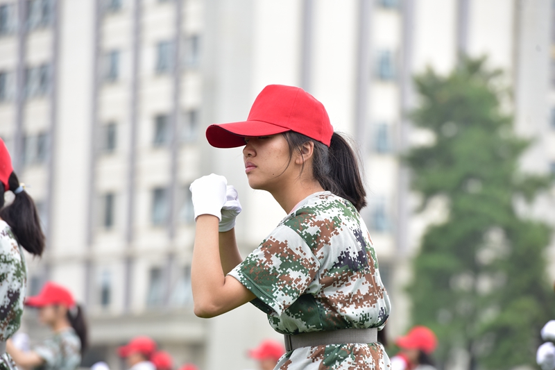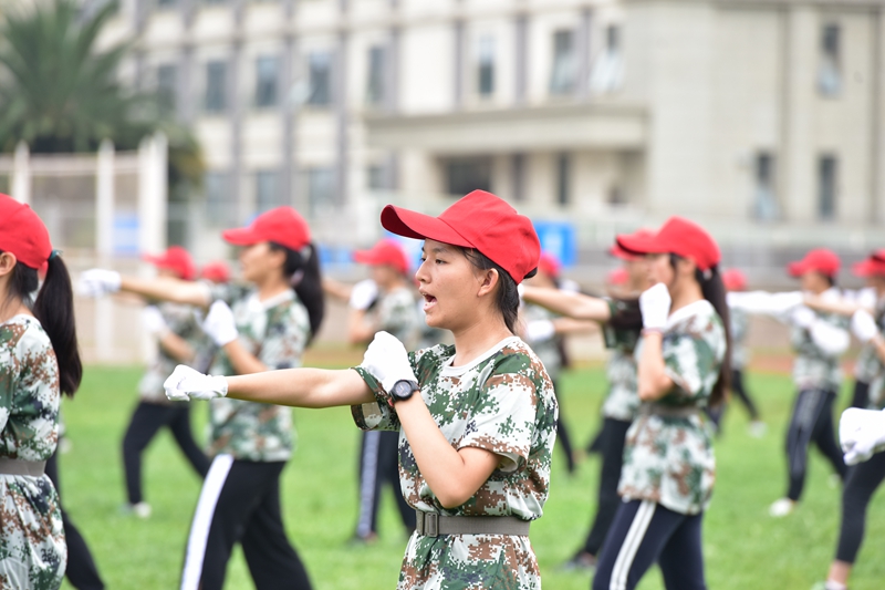 红旗扬,战鼓擂;层林尽染,方圆百米绿茵。2022届新生13个连队整齐着装,势如虹,意风发,只待一声令下。