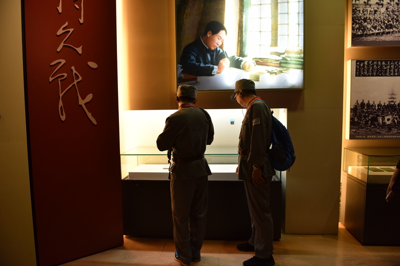 穿越战火硝烟,步枪、大刀、手榴弹、挎包、绑带、缴获的武器……一件件革命文物将大家的思绪拉入烽火硝烟的战争年代,大刀把上的红绸暗红浓郁,陈旧步枪上的痕迹斑斑,军帽袖章整齐排列,将领们在前线阵地沉稳指挥、战士们在战场上浴血奋战的激烈场面历历在目,向大家诉说着壮烈的革命峥嵘岁月。