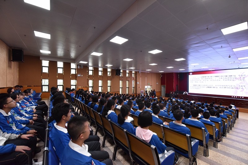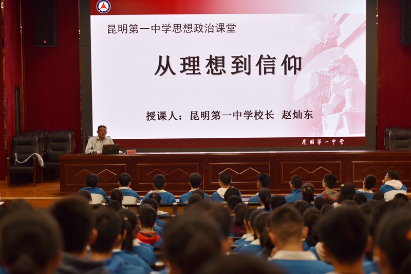2019年9月3日上午,赵校长在综合楼报告厅为高二年级的同学们上了一堂激励人心的思想政治课《从理想到信仰》。赵校长以千年伟人马克思为引,循循善诱,带我们追寻昆华园里李国柱、王德三等革命先烈、学长们的足迹与精神。信仰是一种精神,一种力量,能让我们超越生命的本我,焕发出巨大的能量。无论是放弃国外优越条件回国奉献的钱学森,还是因对中国的热爱和心中的信仰而来到中国的“养牛大户”阳早、寒春……他们追随着心中的那份光芒,用青春点燃前进的火炬,以“千磨万击还坚劲,任尔东西南北风”的信念,开创了光明的未来。一个个鲜活的例子让我们领悟到:唯有信仰才能激发我们的生命,摆脱苍白冰冷的物质,铸就优秀与杰出的品质。听了赵校长的讲座,我们受益匪浅。人如果没有理想和信念,那他就不能算活着,只能算存在。思想智慧的点燃者艾思奇,科学研究的创造者杨振宁,近代教育的引领者熊庆来等,无不是因为具有了矢志不移的理想与信念,才能在艰苦的生活中不畏困难,勇敢前进。学长如此,我辈更当奋发。“青年人正处于学习的黄金时期,应该把学习作为首要任务,作为一种责任,一种精神追求、一种生活方式,树立梦想从学习开始、事业靠本领成就的观念,让勤奋学习成为青春远航的动力,让增长本领成为青春搏击的能量。”赵校长最后以习总书记的这段话寄语昆华学子,希望同学们在昆华园这片沃土上,怀揣理想与信念,好好学习,脚踏实地地走好眼前的每一天,追随前辈们的脚步,在新时代,披荆斩棘,勇往直前,磨砺成自己的英雄!(文字:2021届 范钰晗 章司昊)