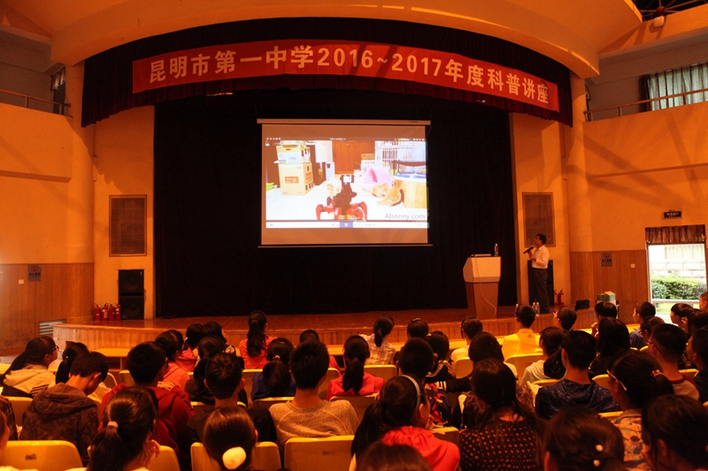 2016年9月12日,我校2016—2017年度科普讲座在学校报告厅开讲。中国科学院自动化研究所原魁研究员为高一年级师生带来一场《离我们越来越近的机器人》的讲座。原魁教授从“什么是‘机器人’”“做我们不愿做的工作的机器人”“好玩儿的机器人”等八个方面为我们介绍了机器人的基本知识及发展前沿,让我们领略了科技的美妙,拓宽了视野,受益匪浅。