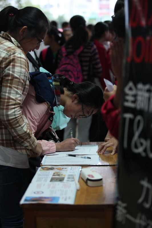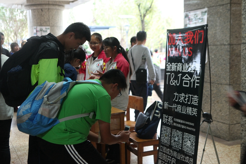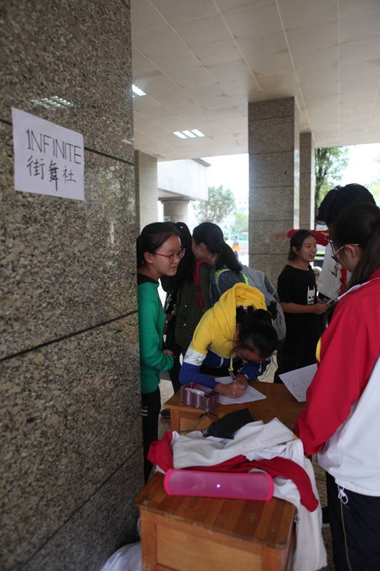 一如往届的招新大会,每一个社团都展现出了自己最富特色的一面,舞社献舞,曲社献曲,舞者舞得帅气活泼,歌者和着弦声、鼓点把乐声绕上八日不绝的房梁。传媒类社团的记者亲自出马游说,模联的精英们西装革履,天文社亲自搭起了天文了望远镜,偶尔走过几位仿佛不属于这个时代的人,把人带入另外一个世界。