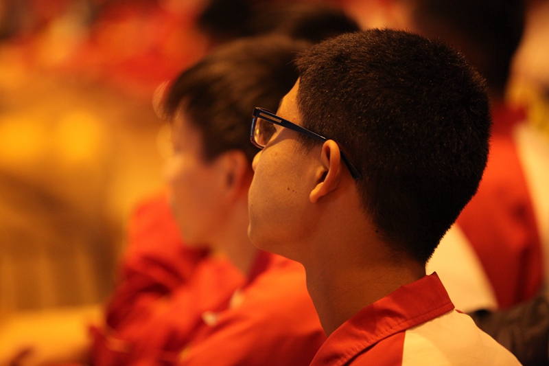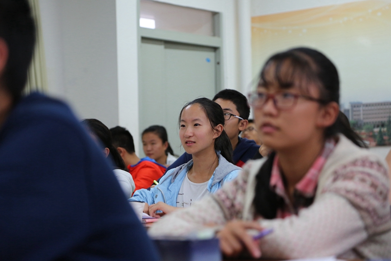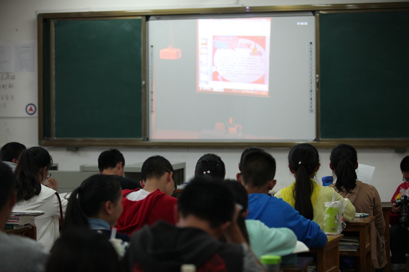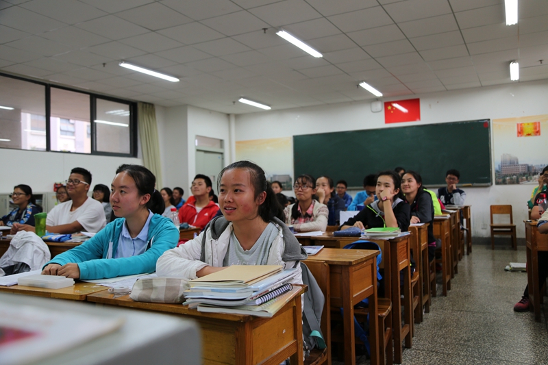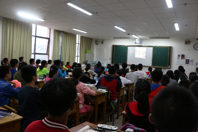 同学们在教室聆听讲座