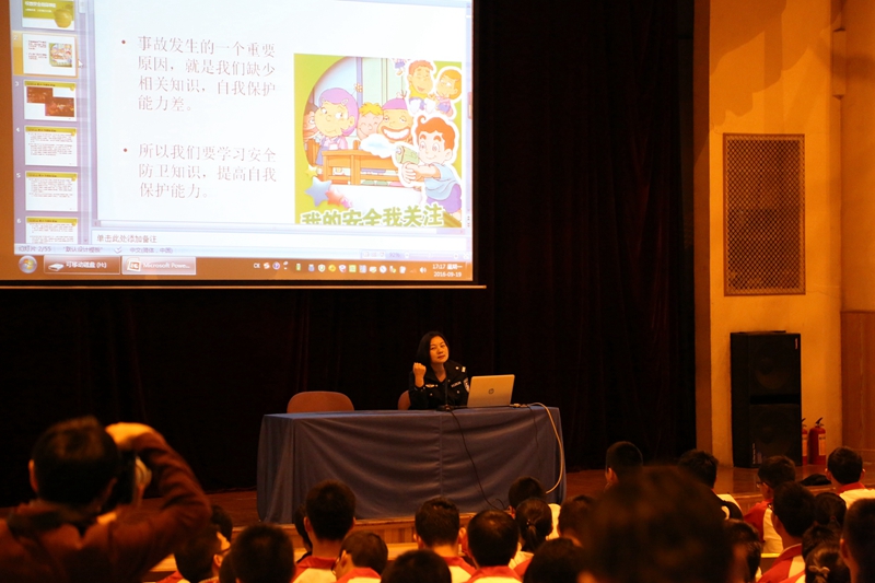 【文字 新闻社杨一戈】千忙万忙,安全不忘。无数惨痛的教训,时时刻刻都在提醒我们——警钟长鸣,才能太平。为了提高同学们的安全意识和自我防范意识,9月19日学校邀请了龙翔派出所社区民警张帆警官对全体同学们进行了安全教育。讲座由行政副校长李品江主持。