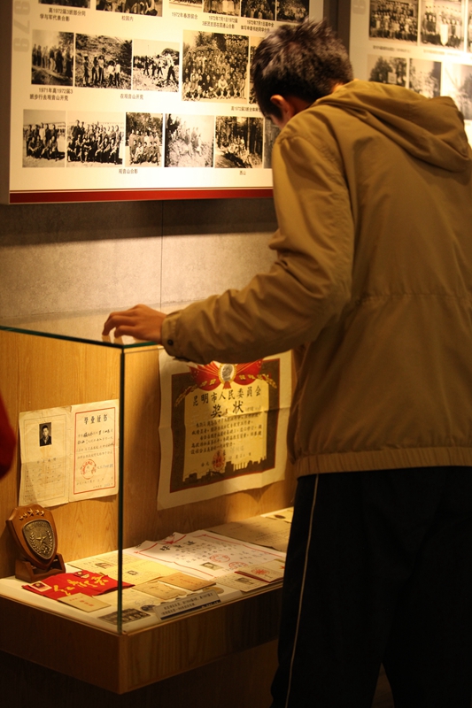 柔光打在一幅幅沉淀着历史的照片上,仿佛在静诉着百年来昆华园中的一点一滴,墙上挂着的昆华校歌朗朗上口,展柜中陈列的备课笔记更是让每一个同学感受到了昆华园中老师们严谨治学的精神。