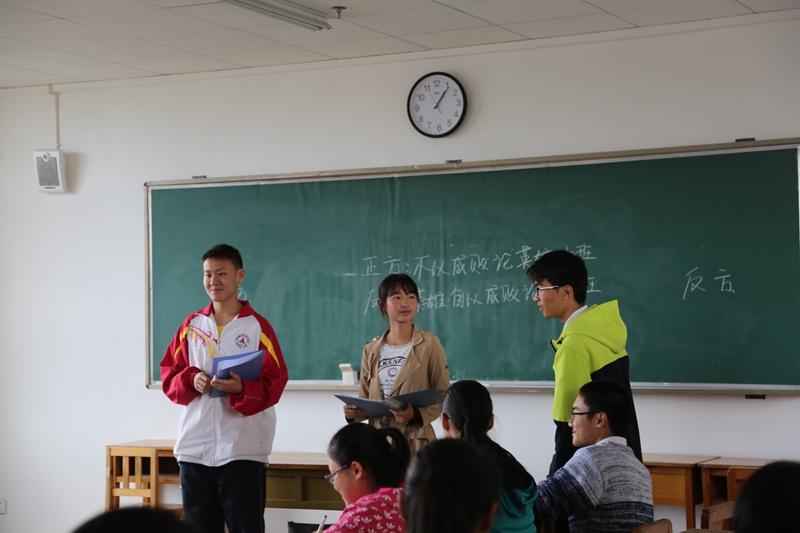 比赛终究还是得分出输赢。不过,这并不意味着,比赛可以分出个高下。互有输赢,精彩不减;这些付诸全力的每一位辩手都是最佳辩手,每一位代表各自班级出战的他们,都是各自班级的英雄。在致以每一位辩手的最真诚的掌声里,踏出会场的他们,都是胜利者;这一刻,胜利的喜悦倍加,即使失败、失落也应被笑颜代替。