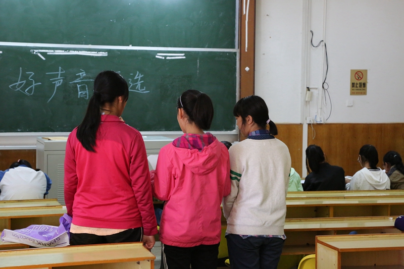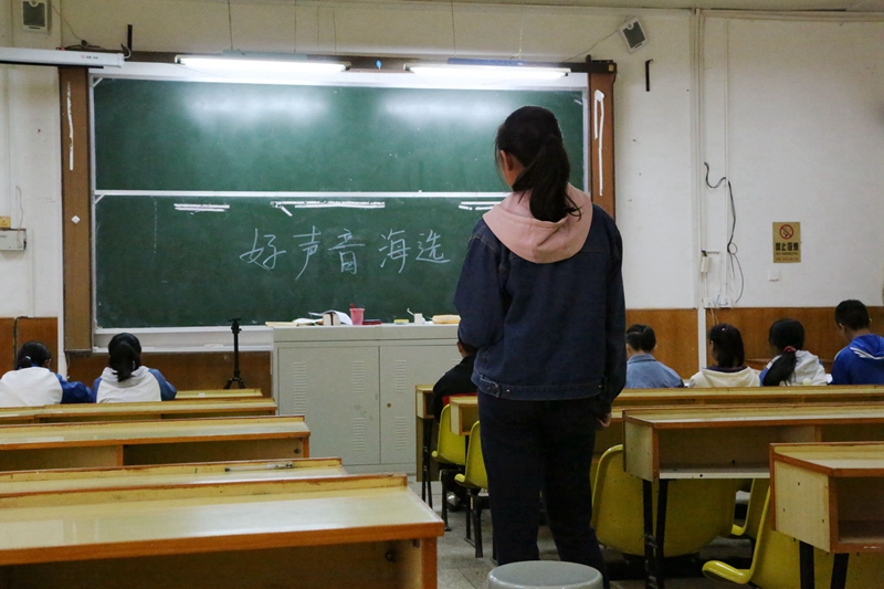 一位女同学入了场,年轻的脸上洋溢的动人的光彩。微微一笑嘴唇翘起浅浅的幅度,流畅的歌声便倾泻而出,跳跃的音符在空气中旋转着,前排的评委们专注而用心,静谧的午后因这场精心打造的海选而显得熠熠生辉。选手们满怀信心地进入又满意欢跃而出。