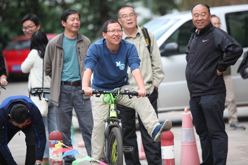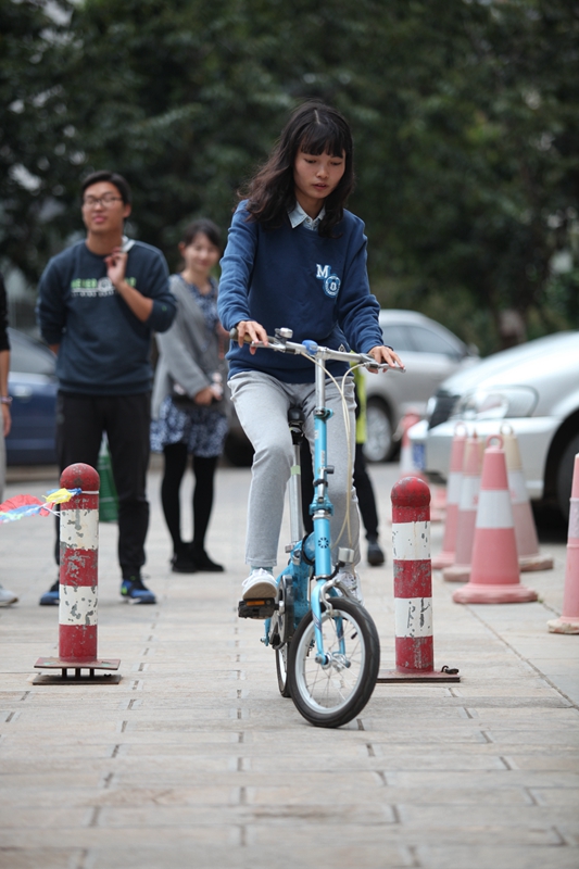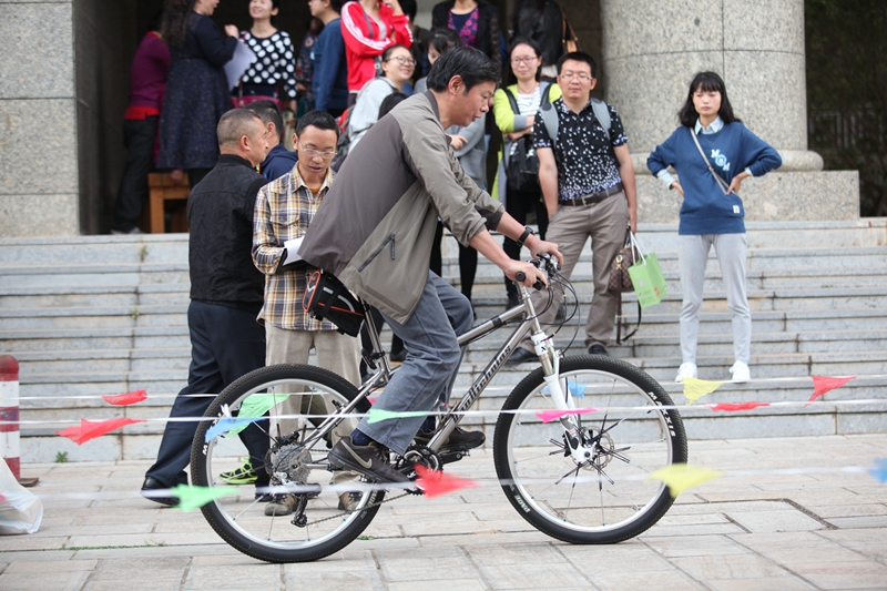 2016年10月26日下午5:30,时间慢些,再慢些流逝,我校教师自行车慢骑比赛正在进行。“成绩3秒!”长长的30米赛道,这个意外诞生的最快纪录,引得现场一片欢笑声。“成绩2分50秒!”短短的30米赛道,凭借高超的技术,最慢的纪录瞬间定格。
