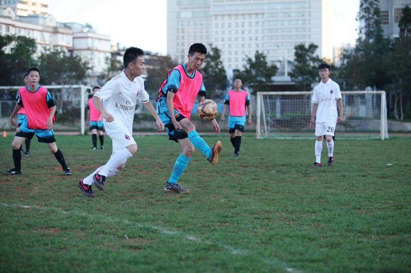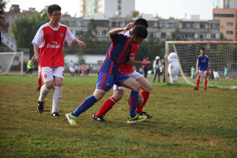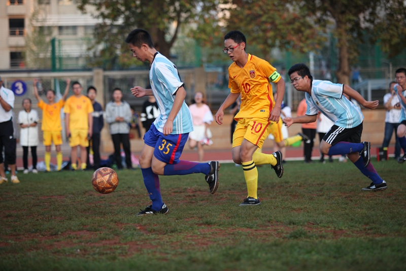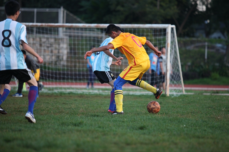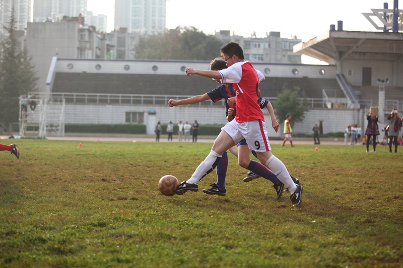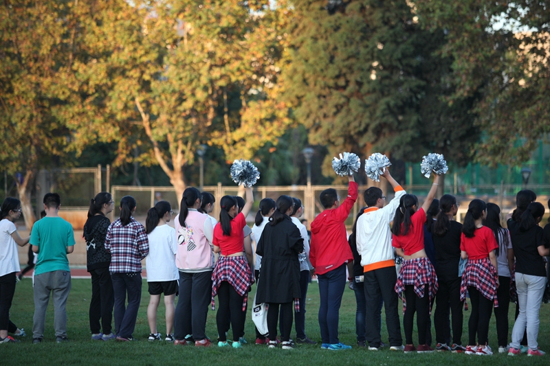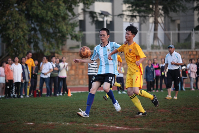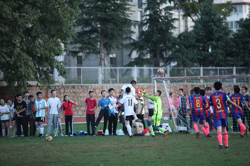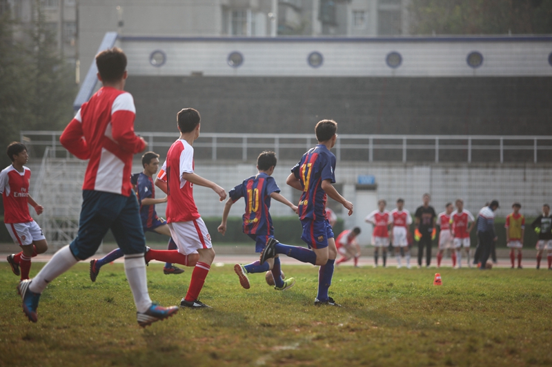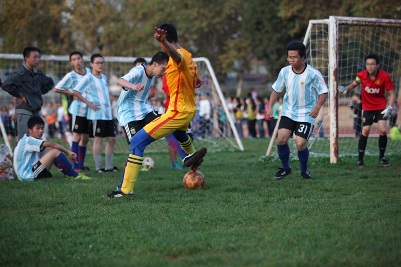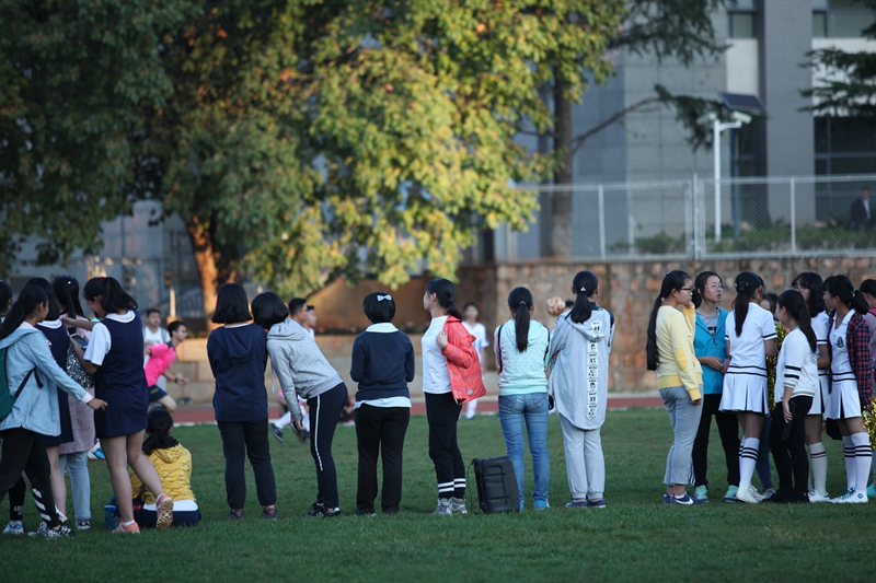 夕阳抚过金黄的树叶,留下树影斑驳。斑驳树影旁,时有身影疾驰而过,那正是绿茵场上奔跑的少年。尽管训练时间紧迫,肩负赢得班级荣誉的重任,队员们依旧从容不迫。赛前,留给同学们的,是他们坚定的背影。