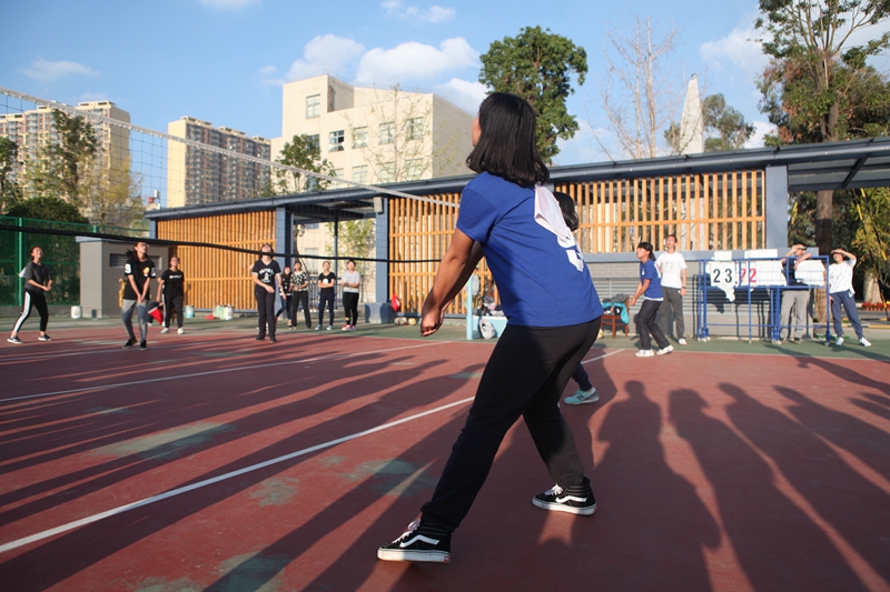 场上的队员们潇洒恣意,而这样轻松自如的背后,是队员们平时刻苦的训练。每天中午,即使烈日当空,四块排球场也不曾闲置。从刚开始的畏惧接球,到后来出彩的团队配合,是对班级的责任感使队员们不曾松懈。