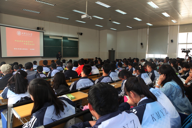 2016年11月17日,西安交通大学校长王树国率领西安交通大学校长助理洪军、西安交通大学法学院书记王保民、西安交通大学招生办公室副主任吴梦秋一行莅临我校。赵校长陪同西安交通大学校长王树国一行参观校园。随后西安交大王树国校长在3号教学楼多媒体教室为昆华学子带来了一场科普讲座——《科技前沿与豆蔻年华——中国科技发展》。