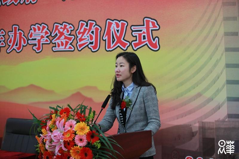 西山区区委书记周红斌讲话,她说西山区政府与昆明市第一中学合作创办昆明市第一中学附属小学,并举行签约仪式暨揭牌仪式。这是我区引进优质教育资源的重要成果,是实施教育强区战略“十项重点工程”的重要举措,是西山教育发展历史上的大事、喜事、盛事。2014年5月,在各位领导的关心支持下,西山区引入昆一中到我区联合举办昆一中西山学校,由昆一中进行教学管理、考试评价,通过教学资源统一、教育活动同步的一体化运作,经过近三年的打造,昆一中西山学校已经跻身于昆明市、云南省的优质学校行列。2016年昆一中西山学校中高考成绩喜人,成为了全省的璀璨新星,成为了我区基础教育的领跑者,教育发展的引路人。今天,双方再次联办昆一中附属小学,实施“名校融校”发展战略,使优质资源共享,力促教育均衡发展,希望昆一中附小接过先辈的火种,发挥好“三名”优势,紧紧抓住当前难得的发展机遇,认真贯彻党的教育方针,用发展的眼光大胆改革、开拓创新,不断加强学校管理,稳步提升教学水平,把昆一中附小打造成全市的一流小学,打造成全市学生家长梦寐以求的学府,在西山区继续擦亮昆一中百年名校的教育品牌。