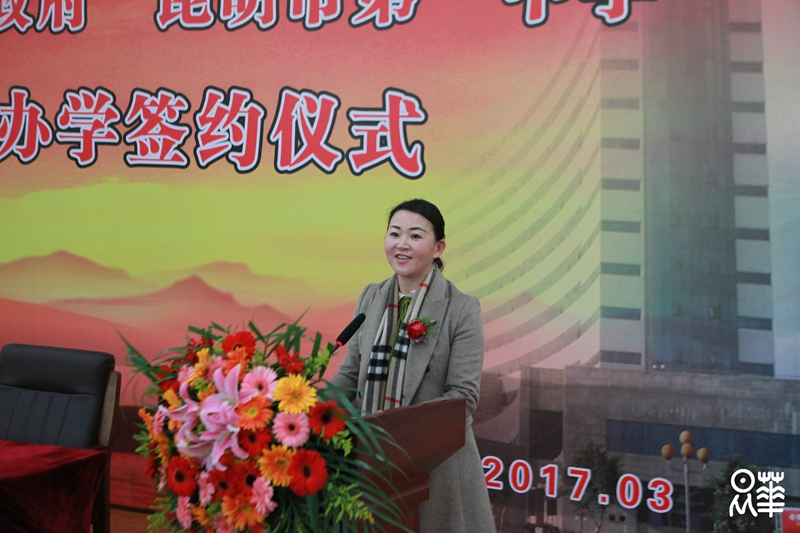 昆一中赵灿东校长在昆一中附小签约暨揭牌仪式上发表讲话,他说三年前,昆一中与西山区人民政府共同携手,合作创办了昆一中西山学校。昆一中西山学校办学两年多来,名校融校,强强联合,管理辐射,资源共享,在大家的共同努力下,昆一中西山学校的教育教学管理不断强化,教育教学质量有了质的提升和飞跃,学校于 2016年3月被正式认定为省一级二等完全中学,顺利跨入昆明市、云南省优质学校前列。今天,昆一中与西山区人民政府再次携手创办昆一中附小,积极发挥百年昆华的辐射引领和示范作用,实施名校融校,积极推进小学、初中、高中各个学段的有效衔接,着力打造优质特色小学到优质品牌初中,再到优质特色高中一体化的教育体系,努力办好人民满意的学校,这是昆一中与西山区人民政府再次合作办学的初衷。